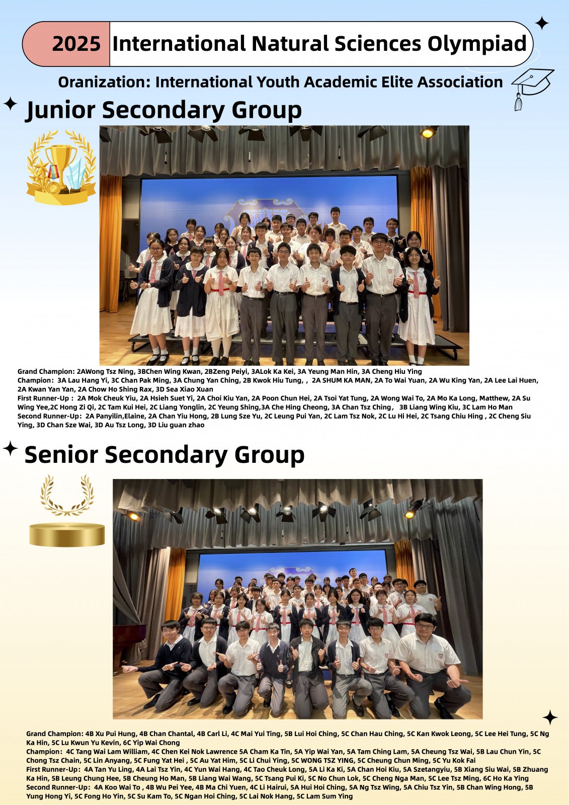 Our students participated in 2025 International Natural Sciences Olympiad, organized by the International Youth Academic Elite Association. Competing against over 700 participants from around the world, our students demonstrated outstanding performance and were awarded the Grand Champion title along with multiple awards.