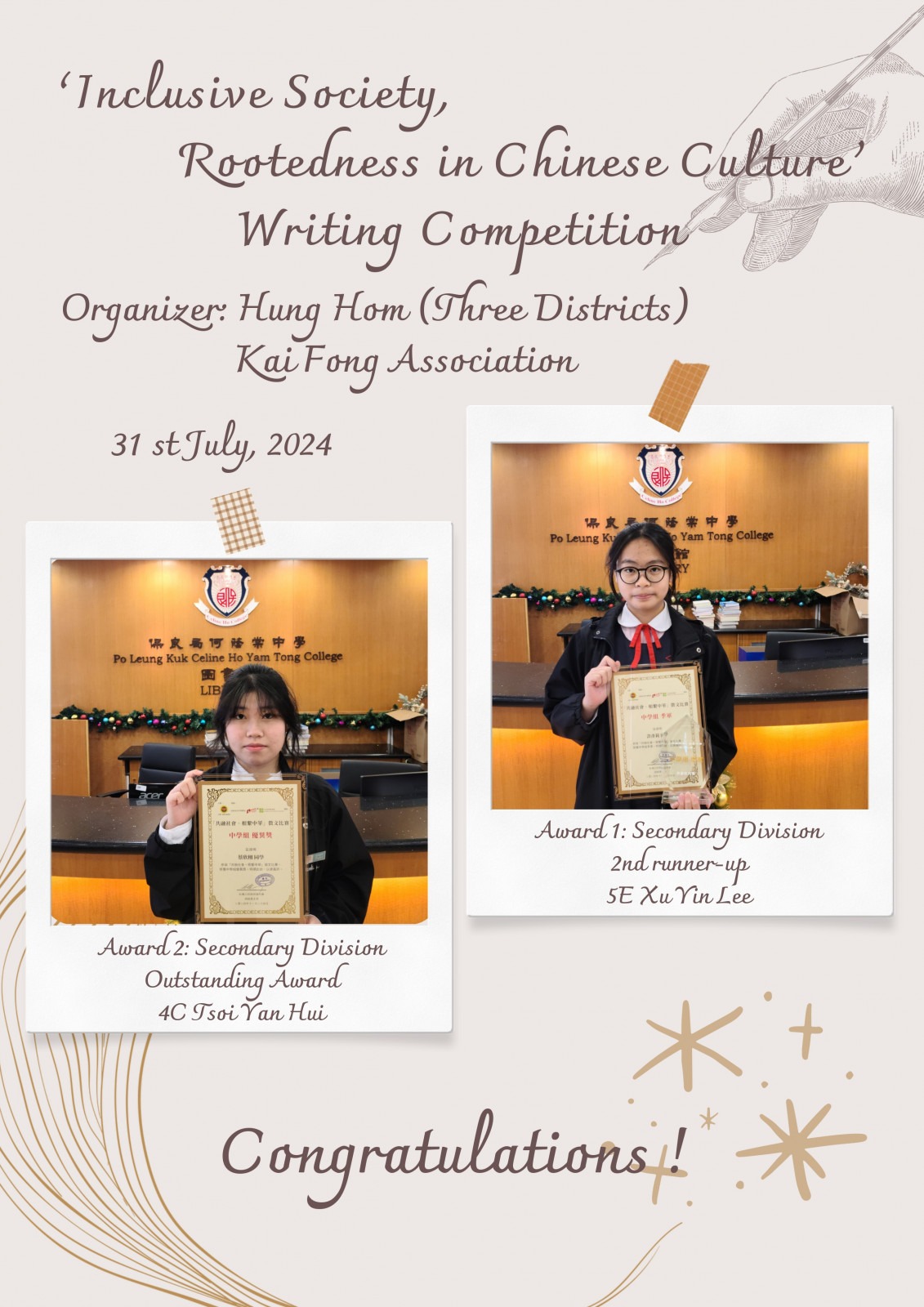 2nd Runner-up and Outstanding Award in 'Inclusive Society, Rootedness in Chinese Culture' Writing Competition