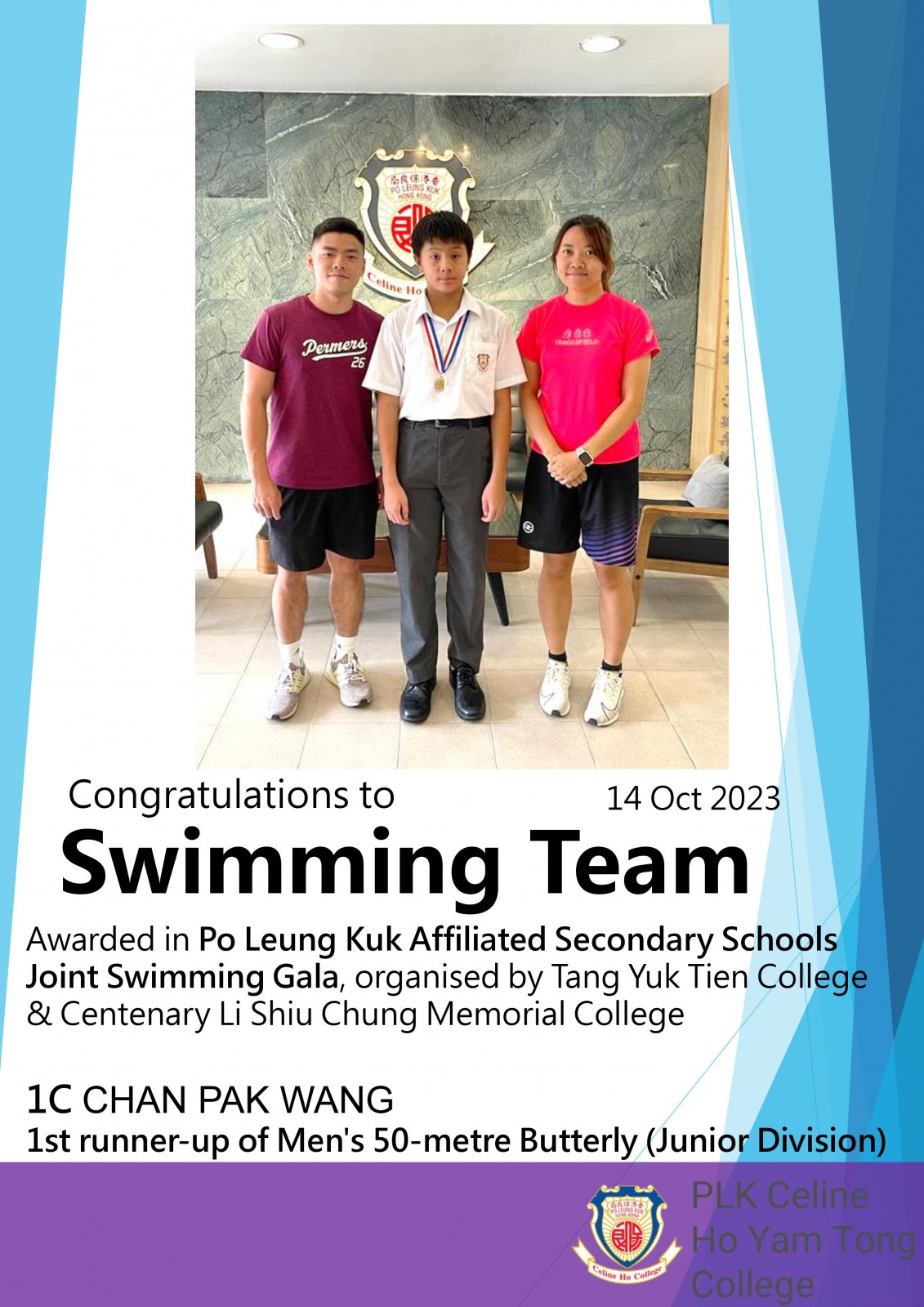 First runner-up 2324PLK Affiliated Secondary School Joint school swimming gala