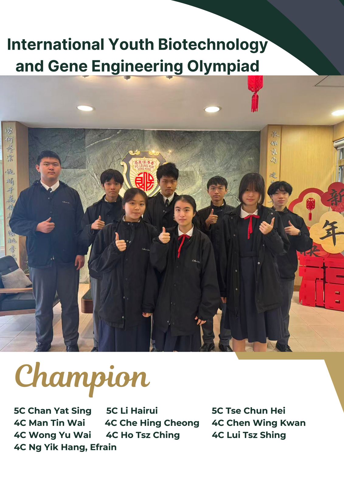 Champion in International Youth Biotechnology and Gene Engineering Olympiad