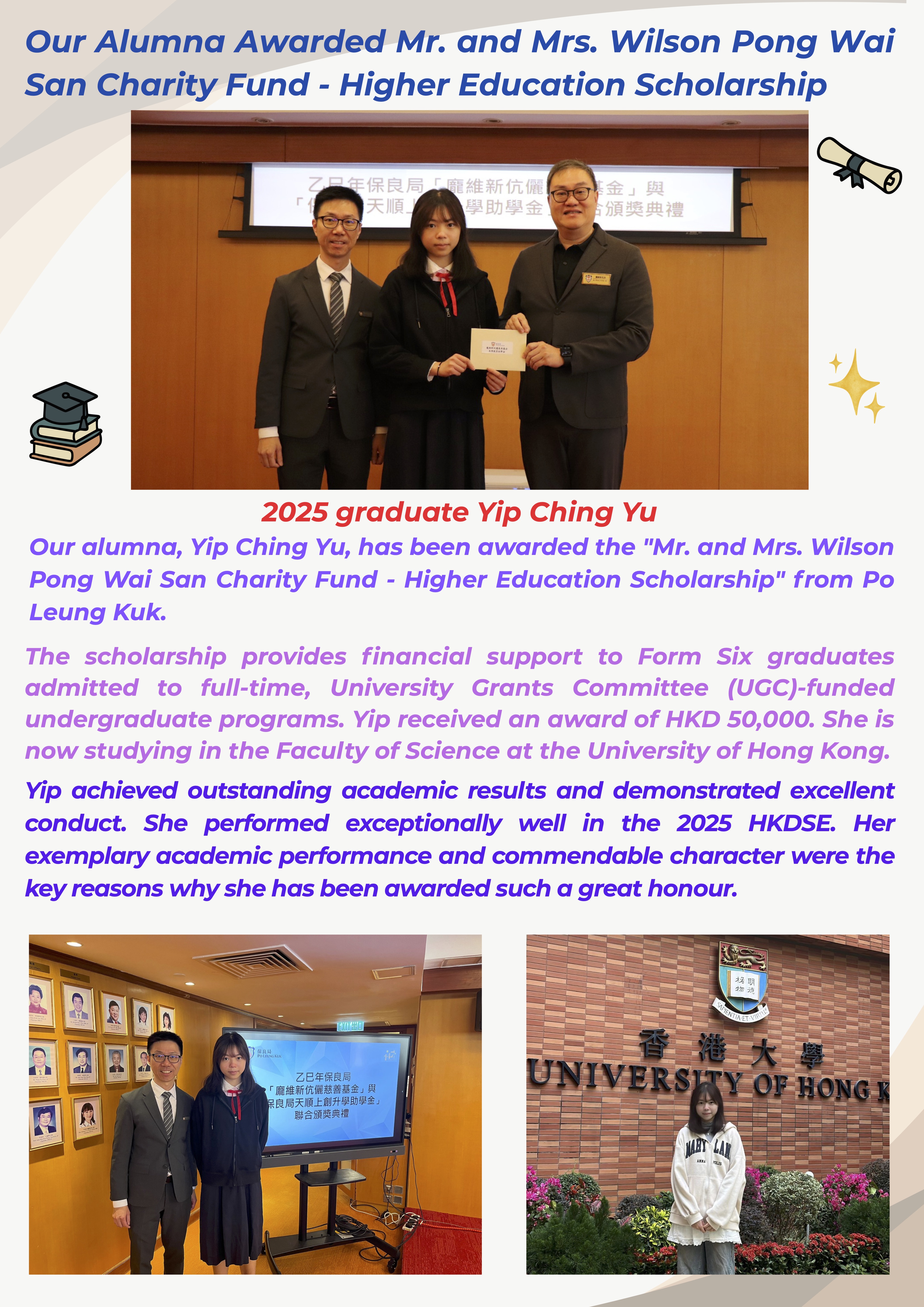Our Alumna Awarded Mr. and Mrs. Wilson Pong Wai San Charity Fund - Higher Education Scholarship