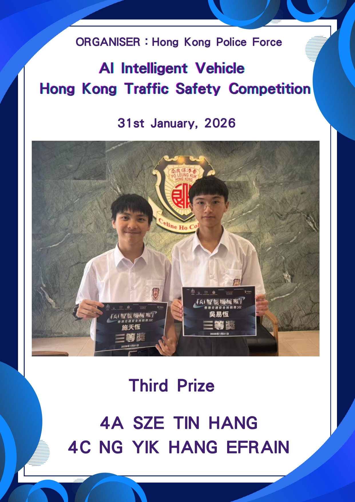 Third Prize in AI Intelligent Vehicle Hong Kong Traffic Safety Competition