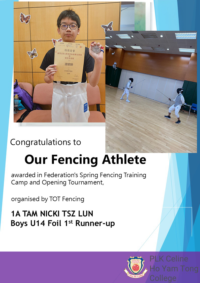 1st Runner-up in Federation's Spring Fencing Training Camp and Opening Tournament (Boys U14 Foil )