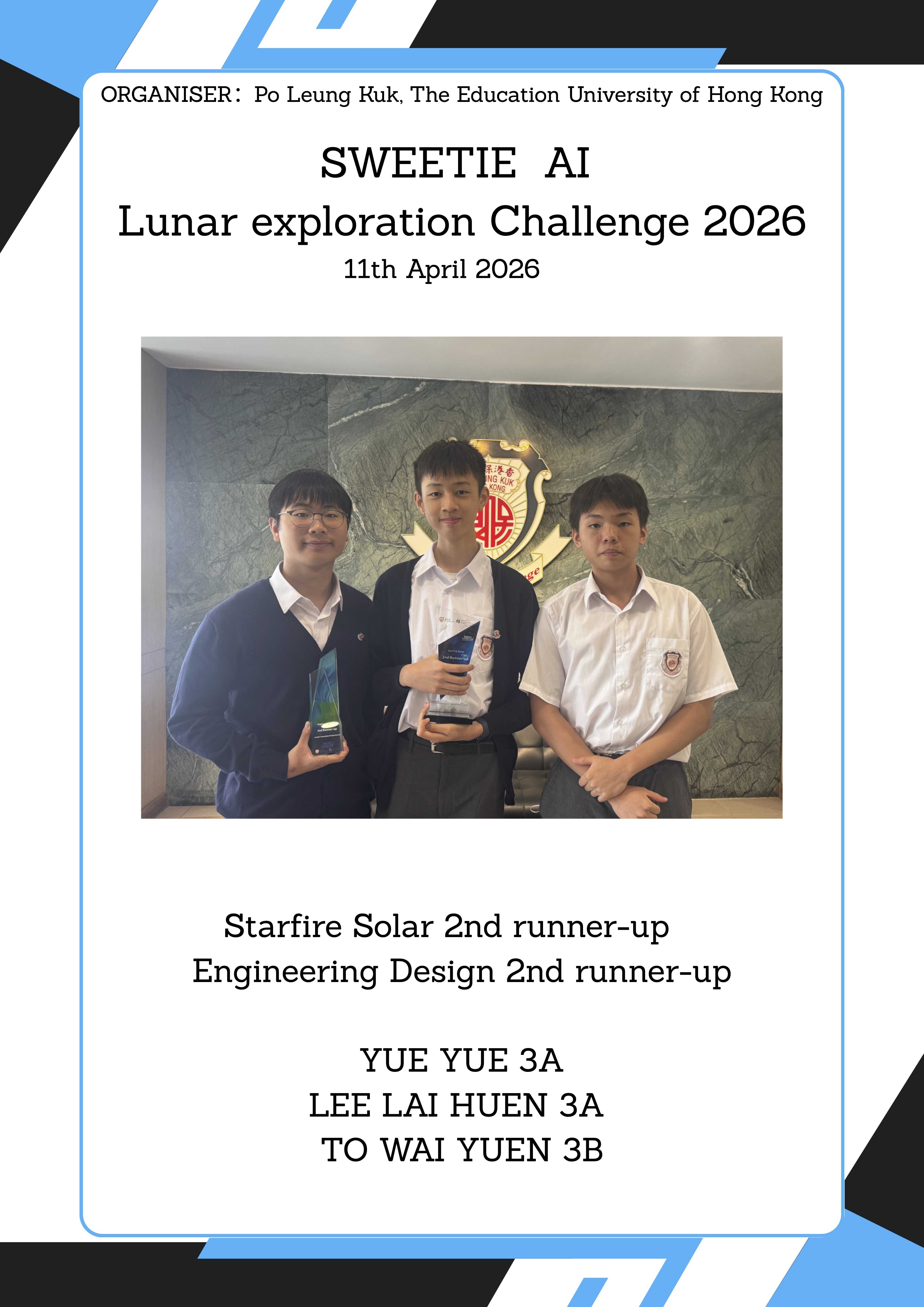 2nd runner-up in SWEETIE AI Lunar Exploration Challenge 2026