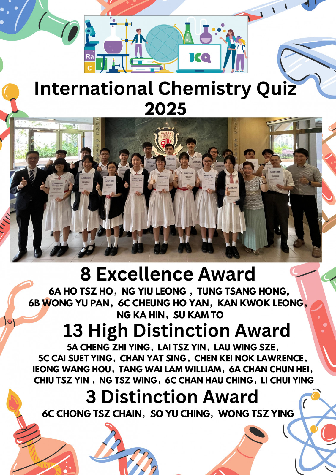 Home » School News » Excellence Award, High Distinction Award, Distinction Award in International Chemistry Quiz 2025
