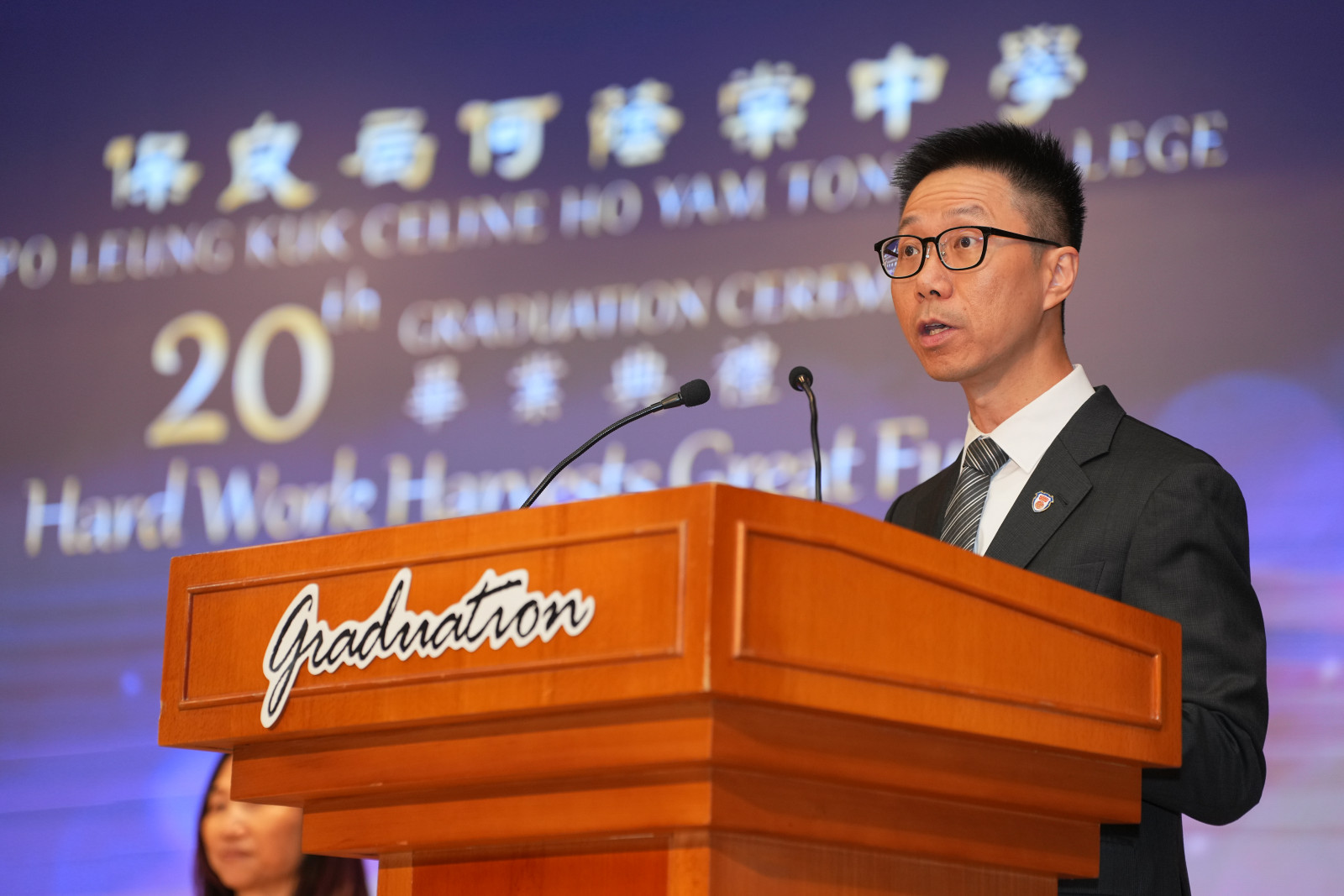 In his speech, Mr. KWOK Joon Fung, Benson, IDSM, Director of Immigration, shared his own experiences to encourage the graduates. He emphasized that everyone will encounter difficulties in life, but with double the effort and a positive attitude, one can overcome challenges and achieve their dreams. His words greatly benefited the graduates and will be valuable for them throughout their lives.