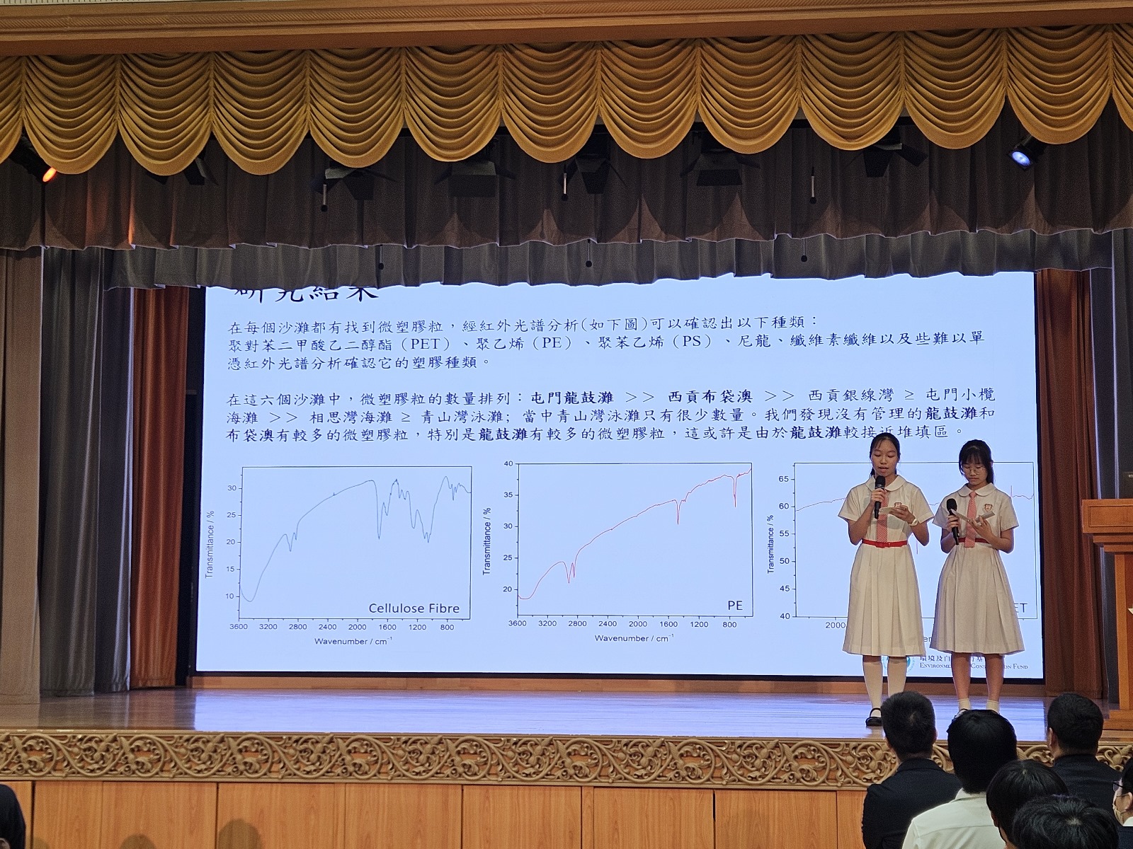 Over the course of eight months, more than twenty Form 4 students have been actively engaged in this research project. They visited six different beaches across Hong Kong to collect samples, which were then analysed in the laboratory. During an assembly on 28 May 2024, these students shared their findings with peers and teachers. This presentation not only highlighted the connection between our daily activities and aspects of national security such as ecological and biological safety, but it also aimed to raise awareness about the importance of reducing plastic usage and conserving our environment.
