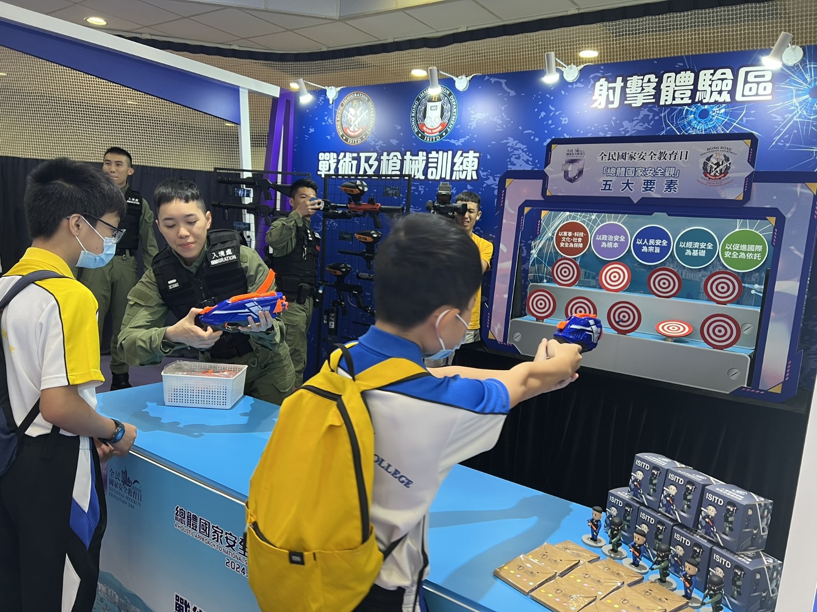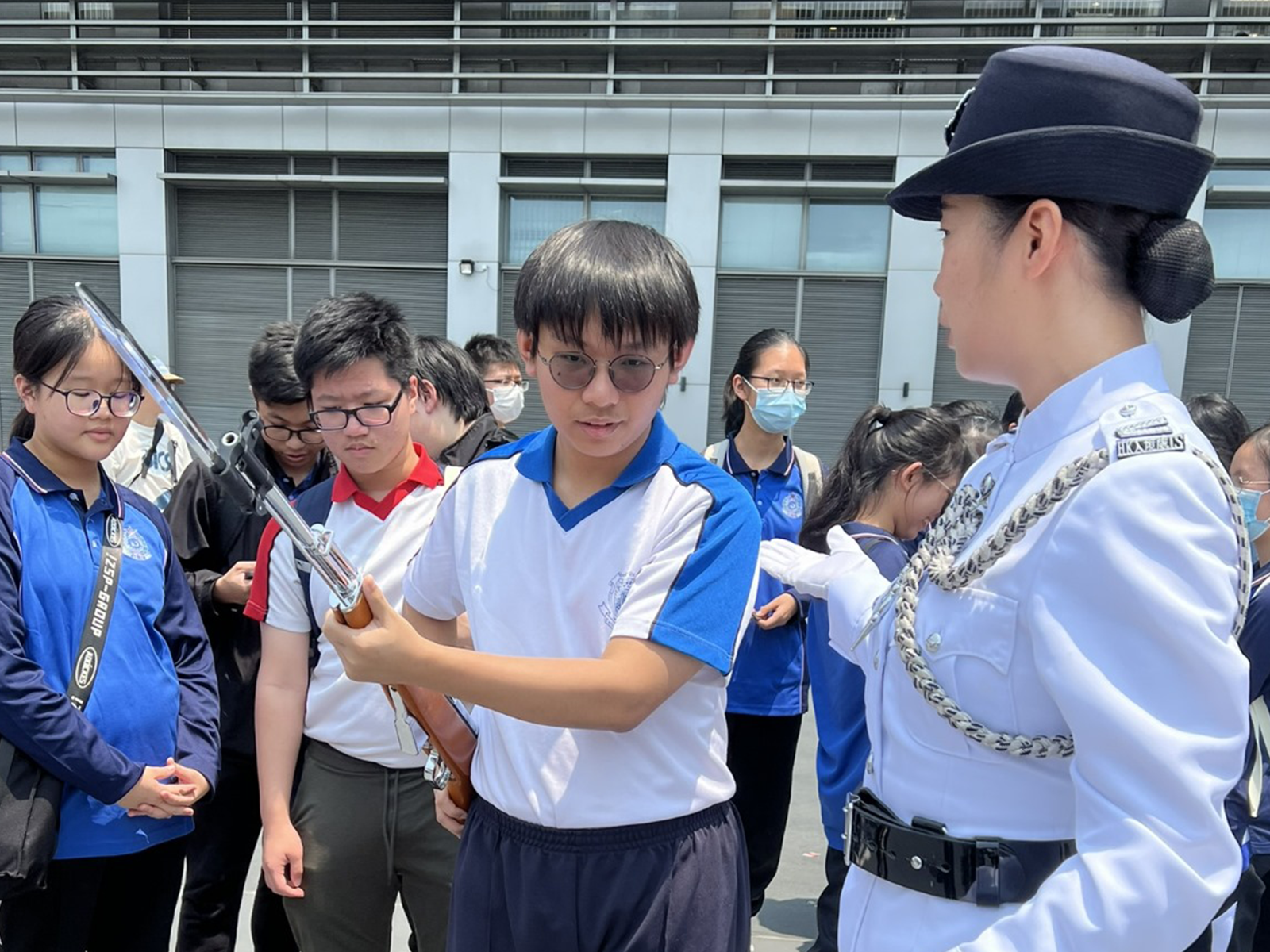 National Security Education Day falls on 15 April. A speech was delivered under the national flag on 10 April to highlight the theme of National Security Education Day. All students watched an educational video about National Security on 15 April. On top of that, on Saturday 13 April, students, Immigration Department Youth Leaders Corps and teachers joined the open day held by the Immigration Service Institute of Training and Development. Participants took part in a series of interactive activities in order to raise the awareness of national security and understand more about the duties of the Immigration Department in maintaining and implementing the principle of "one country, two systems", safeguarding national security, and serving Hong Kong residents, including those outside Hong Kong.