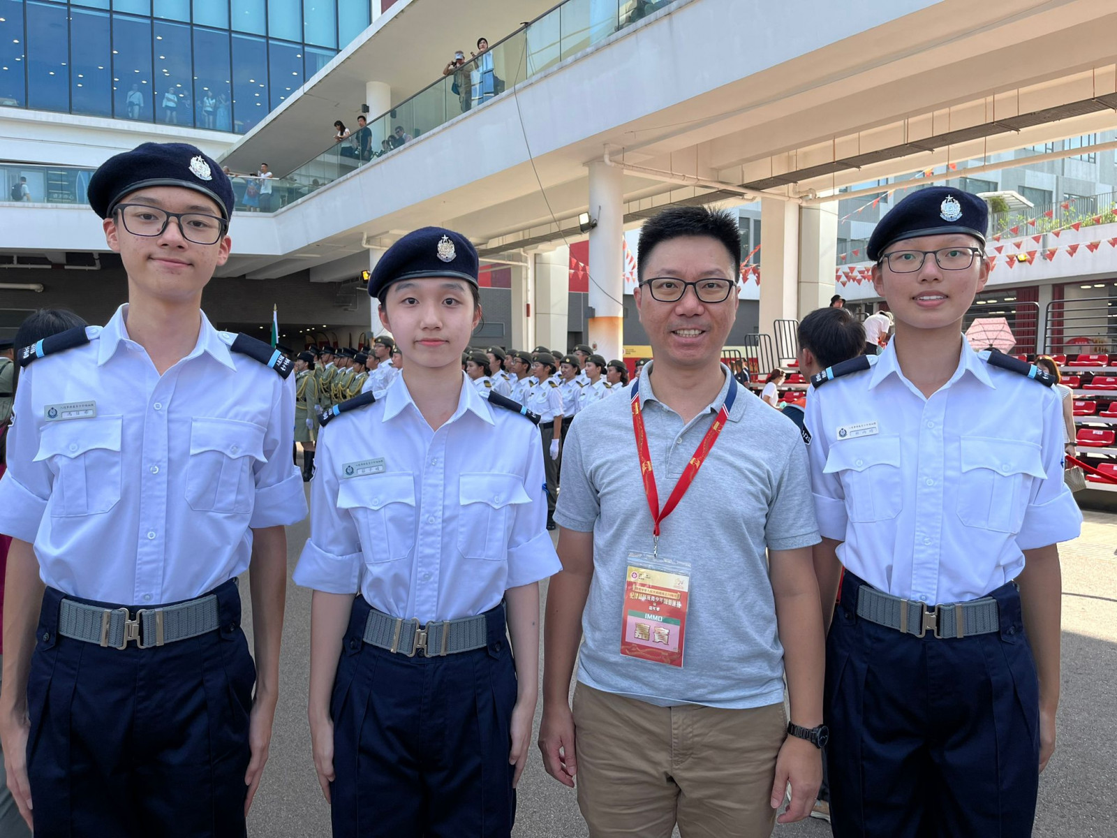 On October 1st, National Day, three students from our school's Immigration Department Youth Leaders Corps participated in the " Parade by Disciplined Services and Youth Groups cum Carnival for Celebrating the 74th Anniversary of the Founding of the People's Republic of China". Through well-organized marching formations and unwavering determination in their eyes, the students demonstrated a spirit of perseverance and obedience. This event broadened the students' horizons and enhanced their sense of national identity.
