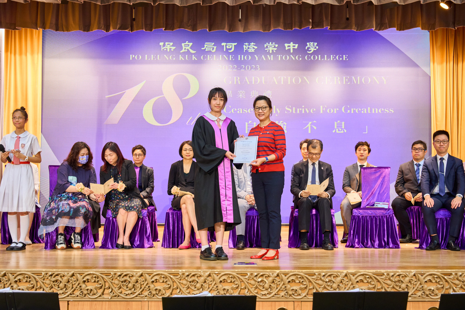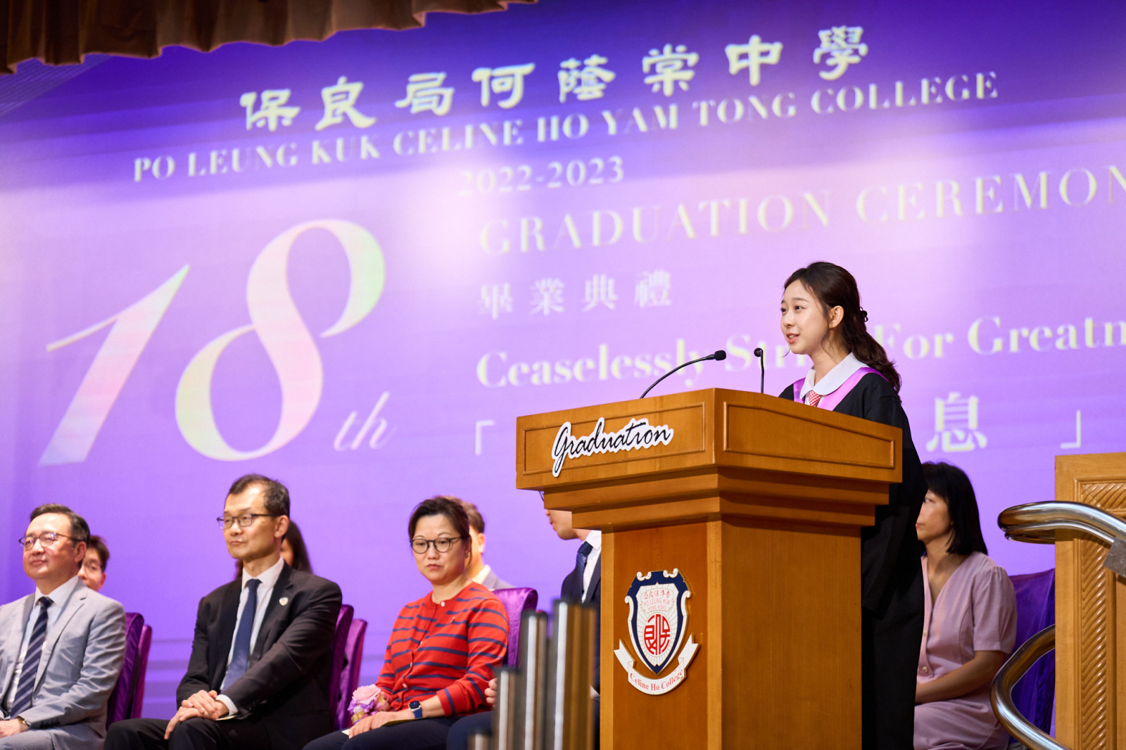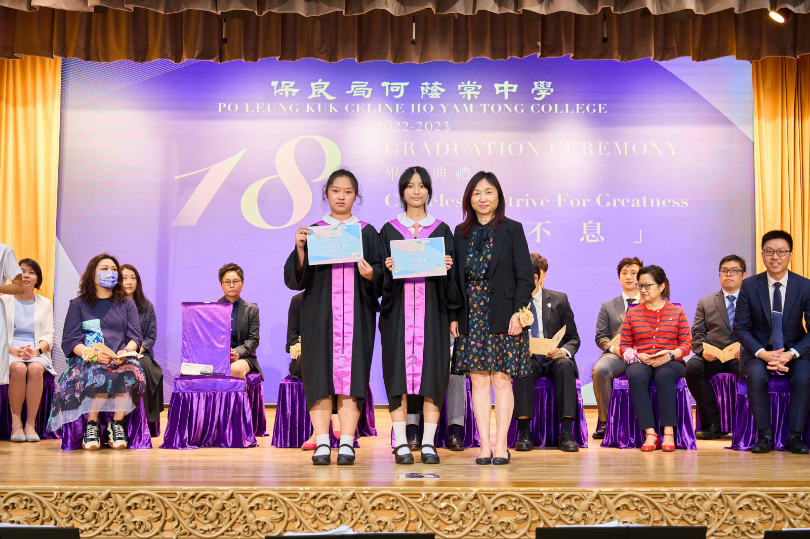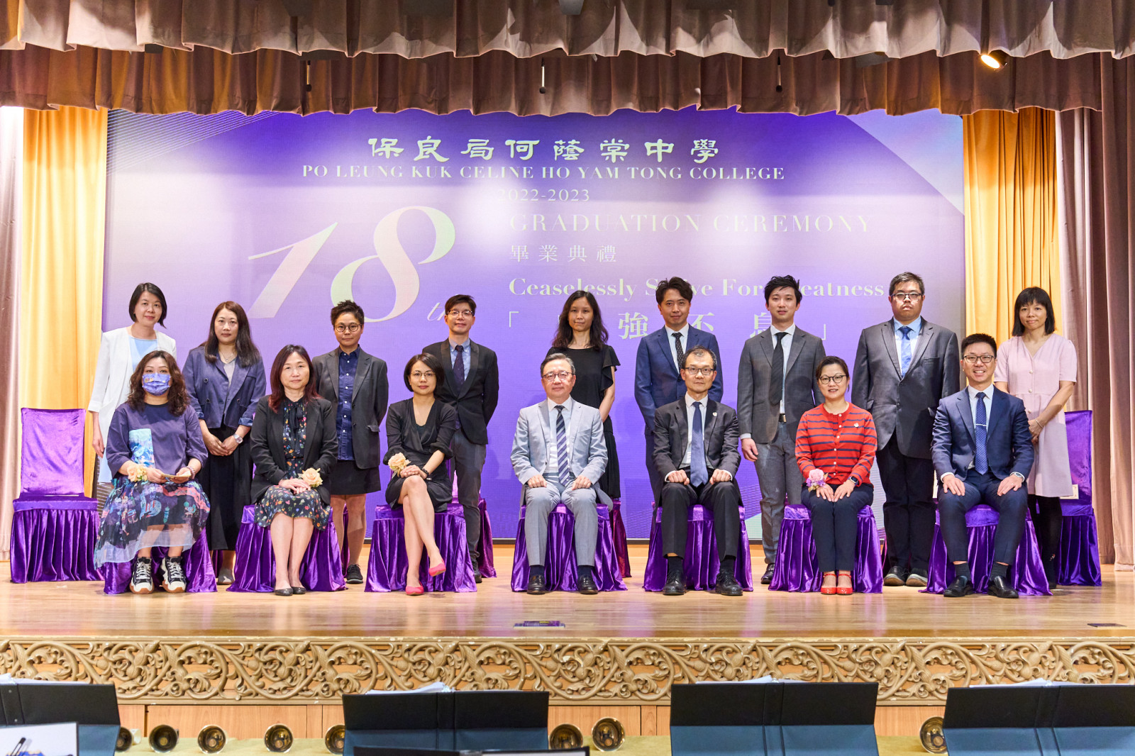 "The Eighteenth Graduation Ceremony" of our school was held on Friday, July 7, 2023, with Eric Cheng Kam Chung, SBS, MH, OStJ, JP, the Supervisor of our school, serving as the presiding guest. The theme of this graduation ceremony is "Ceaselessly strive for greatness", with the hope of inspiring all graduates to overcome difficulties, face challenges courageously, and achieve their aspirations.