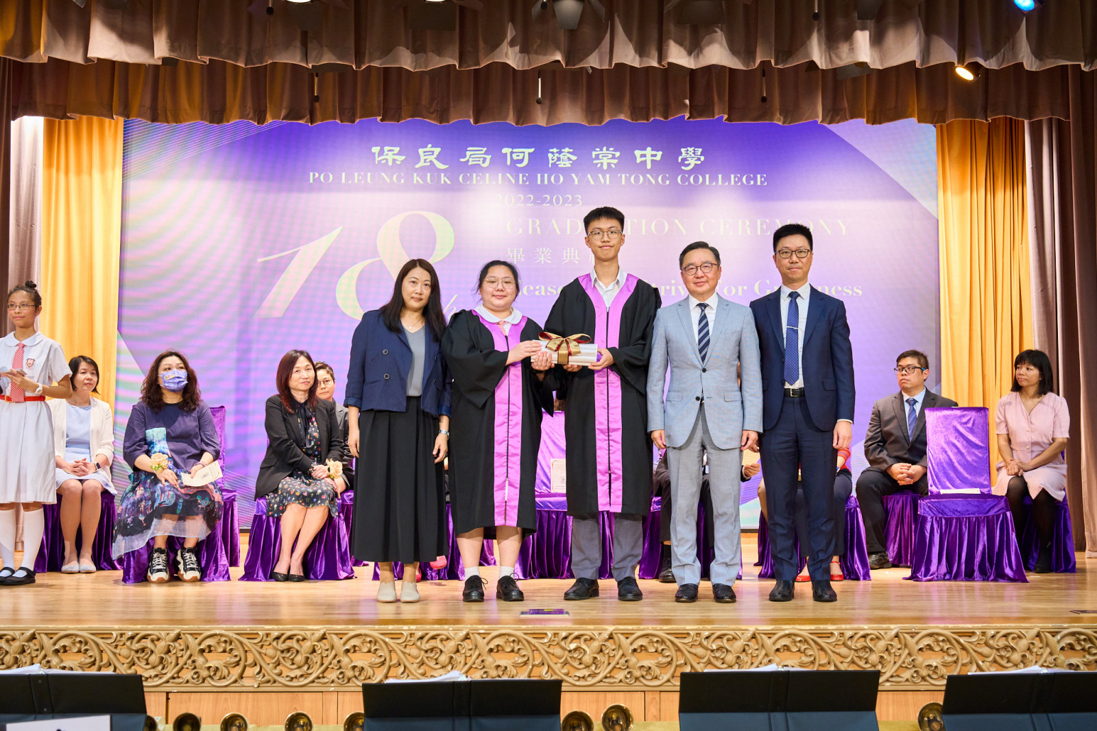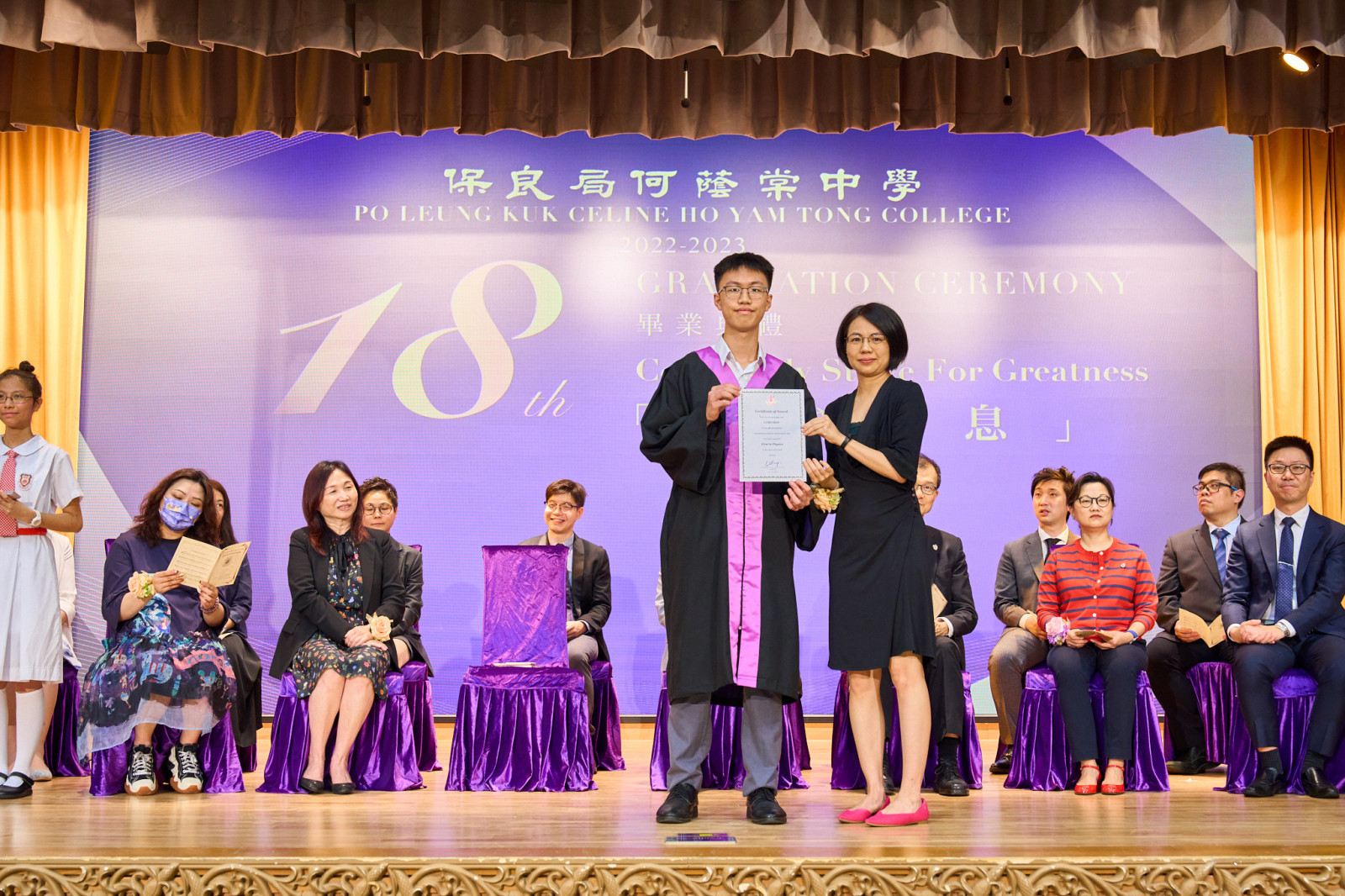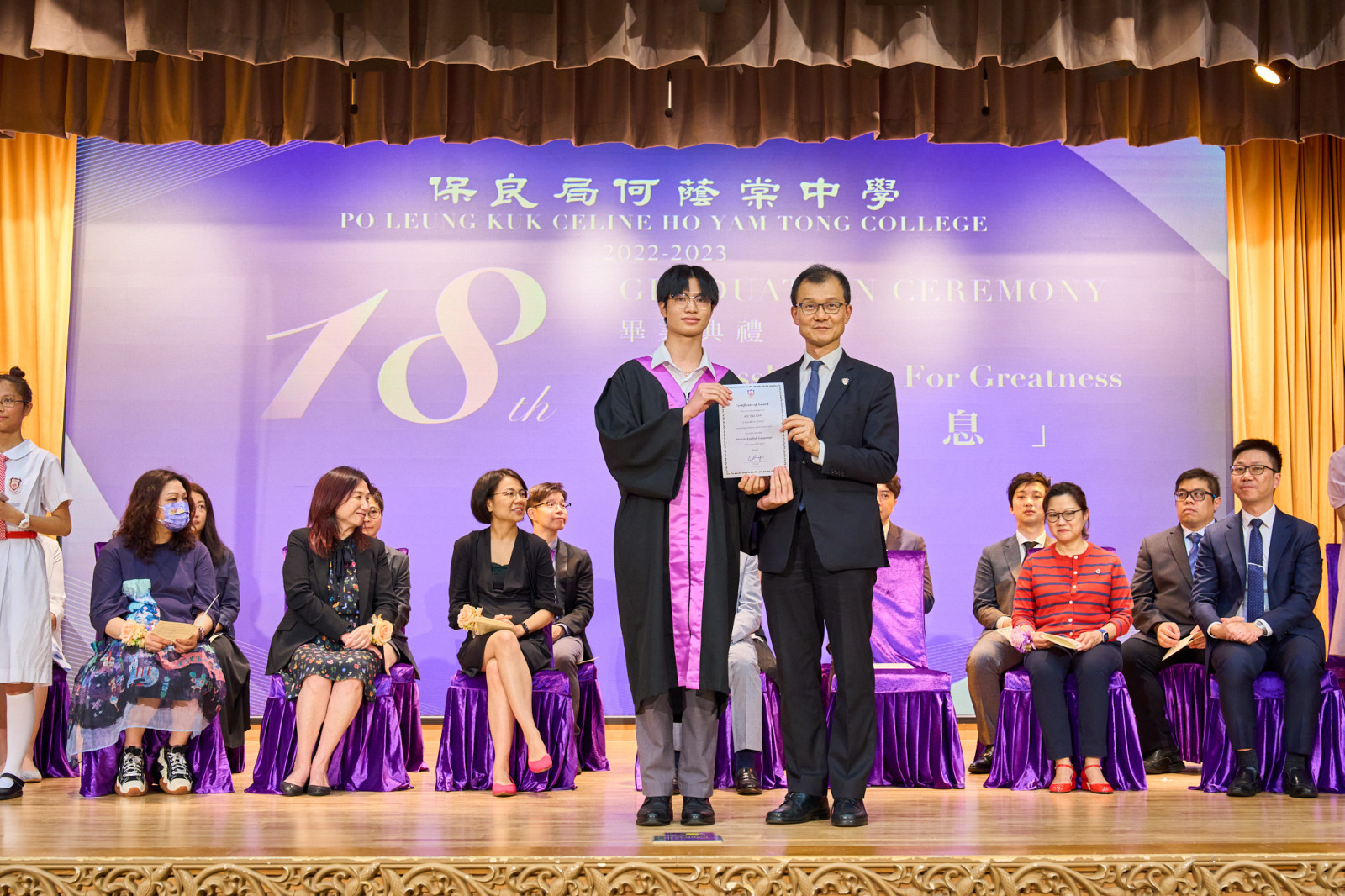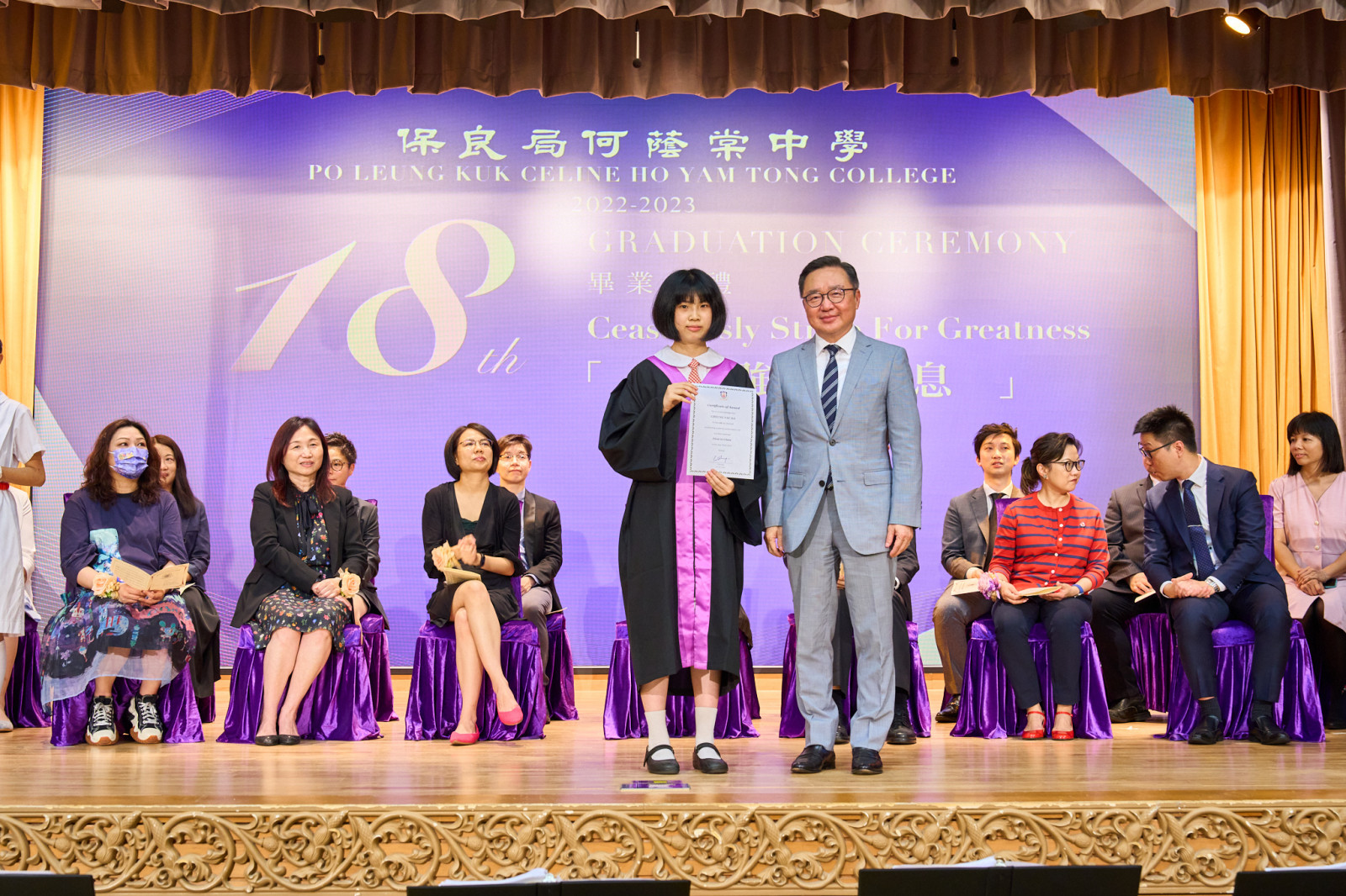 "The Eighteenth Graduation Ceremony" of our school was held on Friday, July 7, 2023, with Eric Cheng Kam Chung, SBS, MH, OStJ, JP, the Supervisor of our school, serving as the presiding guest. The theme of this graduation ceremony is "Ceaselessly strive for greatness", with the hope of inspiring all graduates to overcome difficulties, face challenges courageously, and achieve their aspirations.