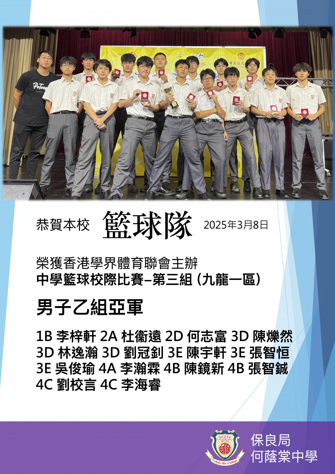 保良局屬下中學聯校運動會2024-2025 - 男子初級組團體季軍及多個獎項