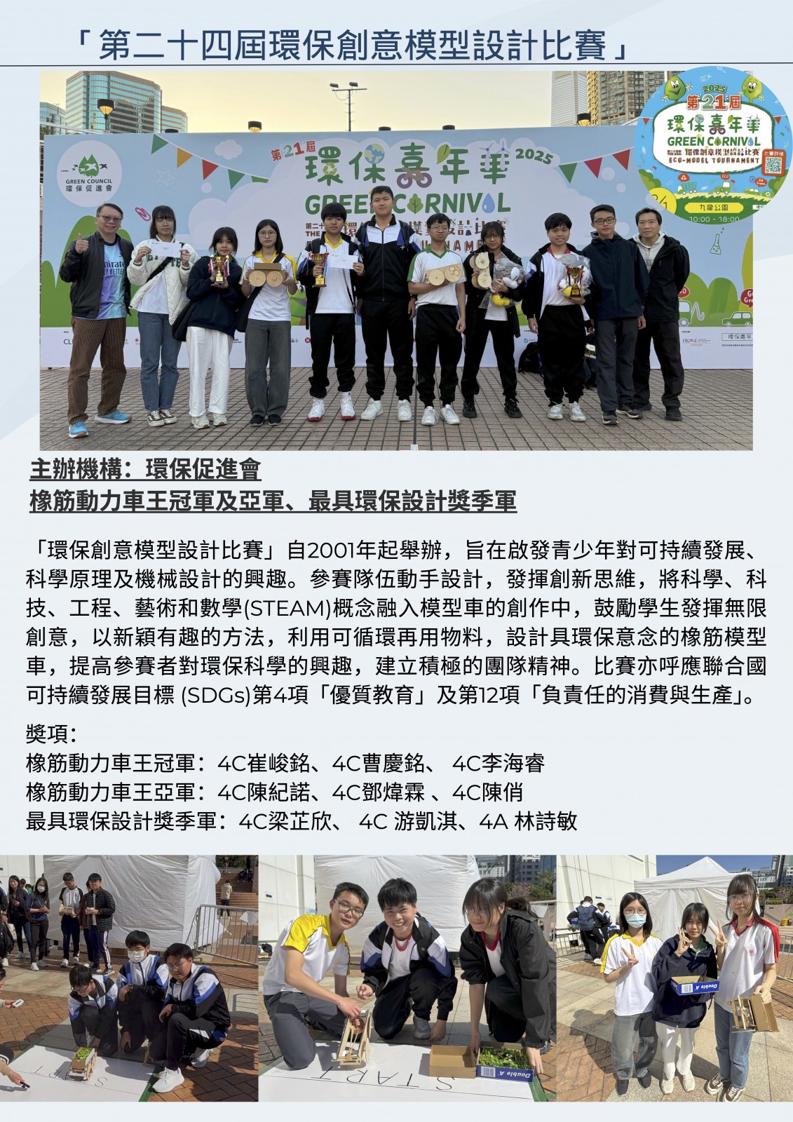 第二十四屆環保創意模型設計比賽 - 橡筋動力車王冠軍及亞軍、最具環保設計獎季軍