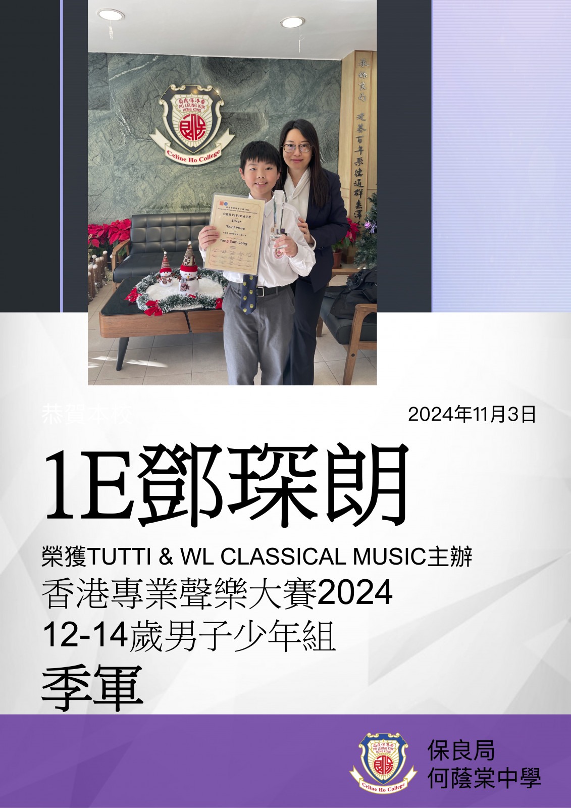 香港專業聲樂大賽2024 (12-14歲男子少年組) - 季軍