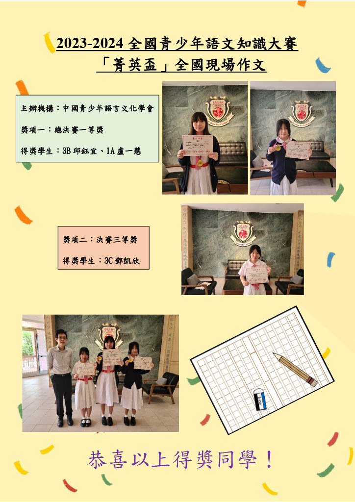 2023-2024全國青少年語文知識大賽「菁英盃」現場作文 - 一等獎及三等獎