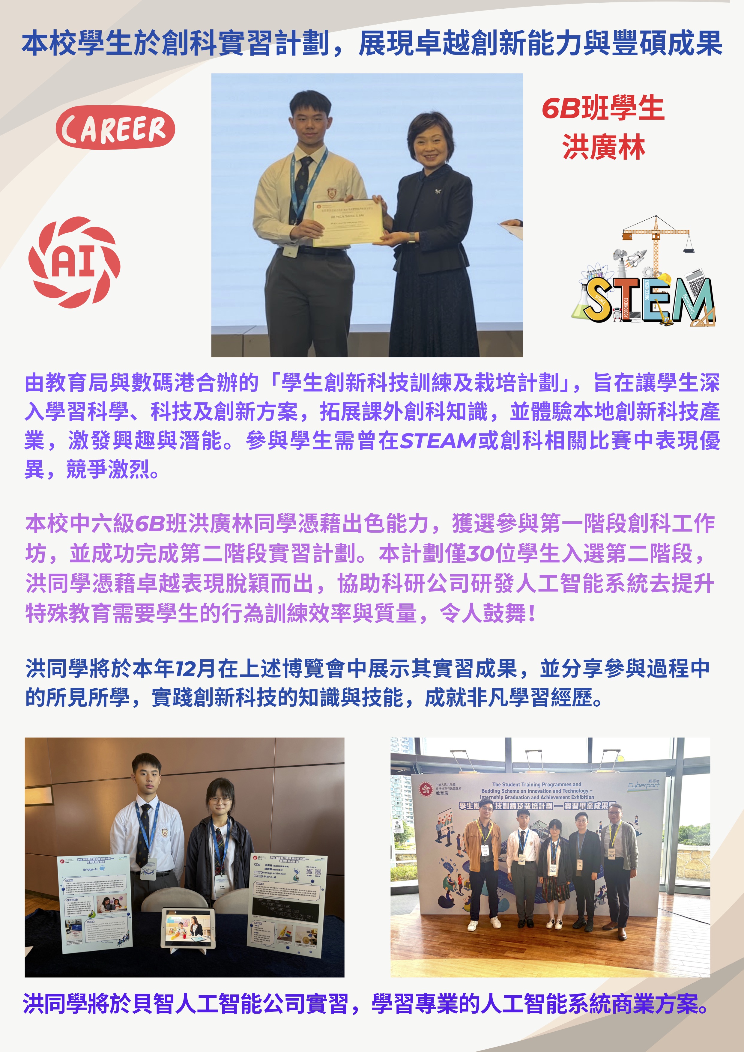 本校學生於創科實習計劃,展現卓越創新能力與豐碩成果