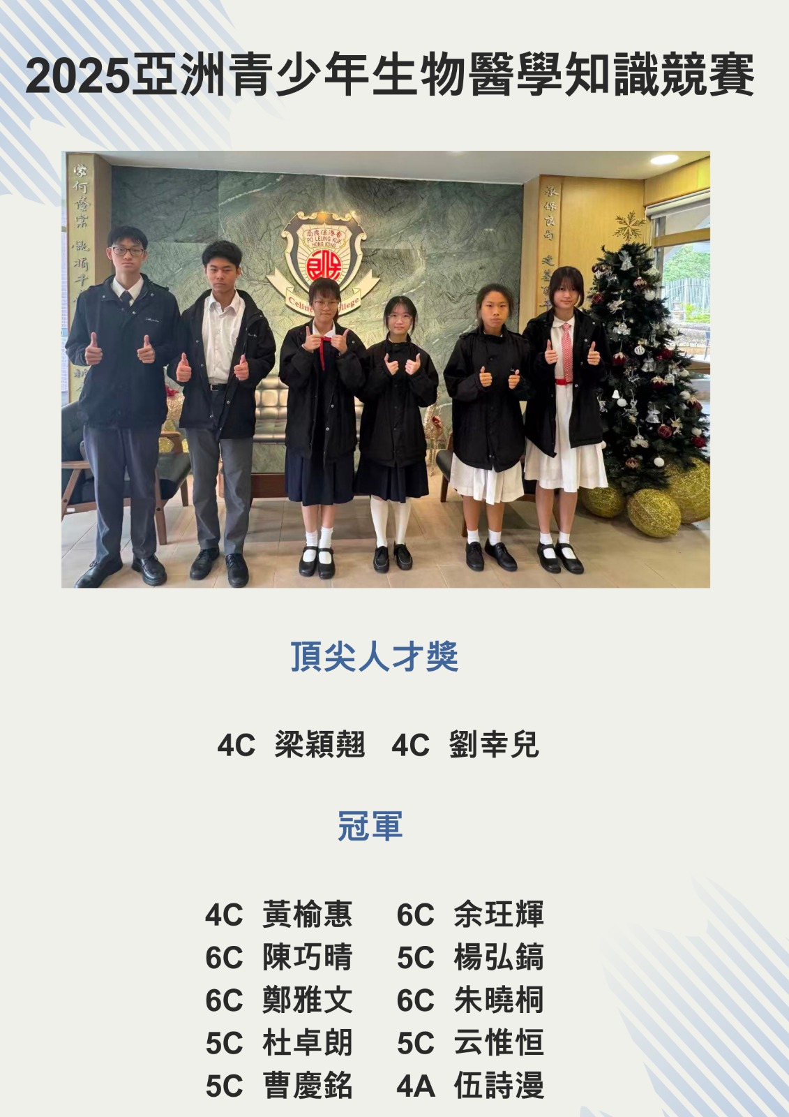 2025亞洲青少年生物醫學知識競賽 - 冠軍及頂尖人才獎