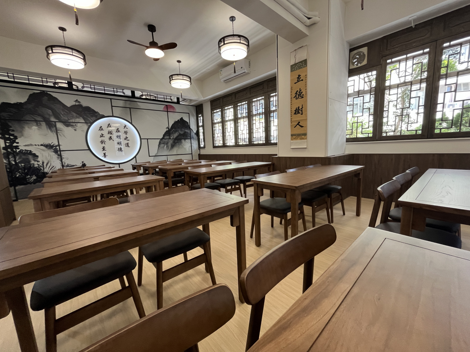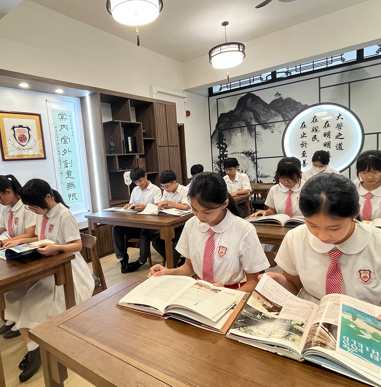 「明德書舍」內有中華傳統擺設和展品,令學生能在洋溢著中華文化氣息的課室上課及活動。除了上課外,明德書舍將會進行中華文化活動,如書法、茶藝等,讓學生對中華文化有全面認識。
