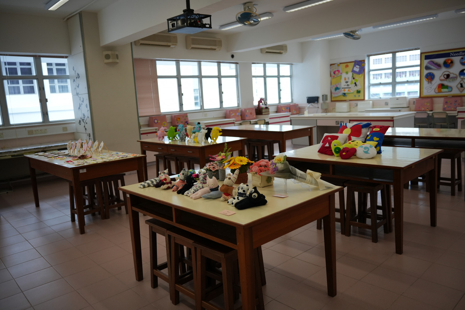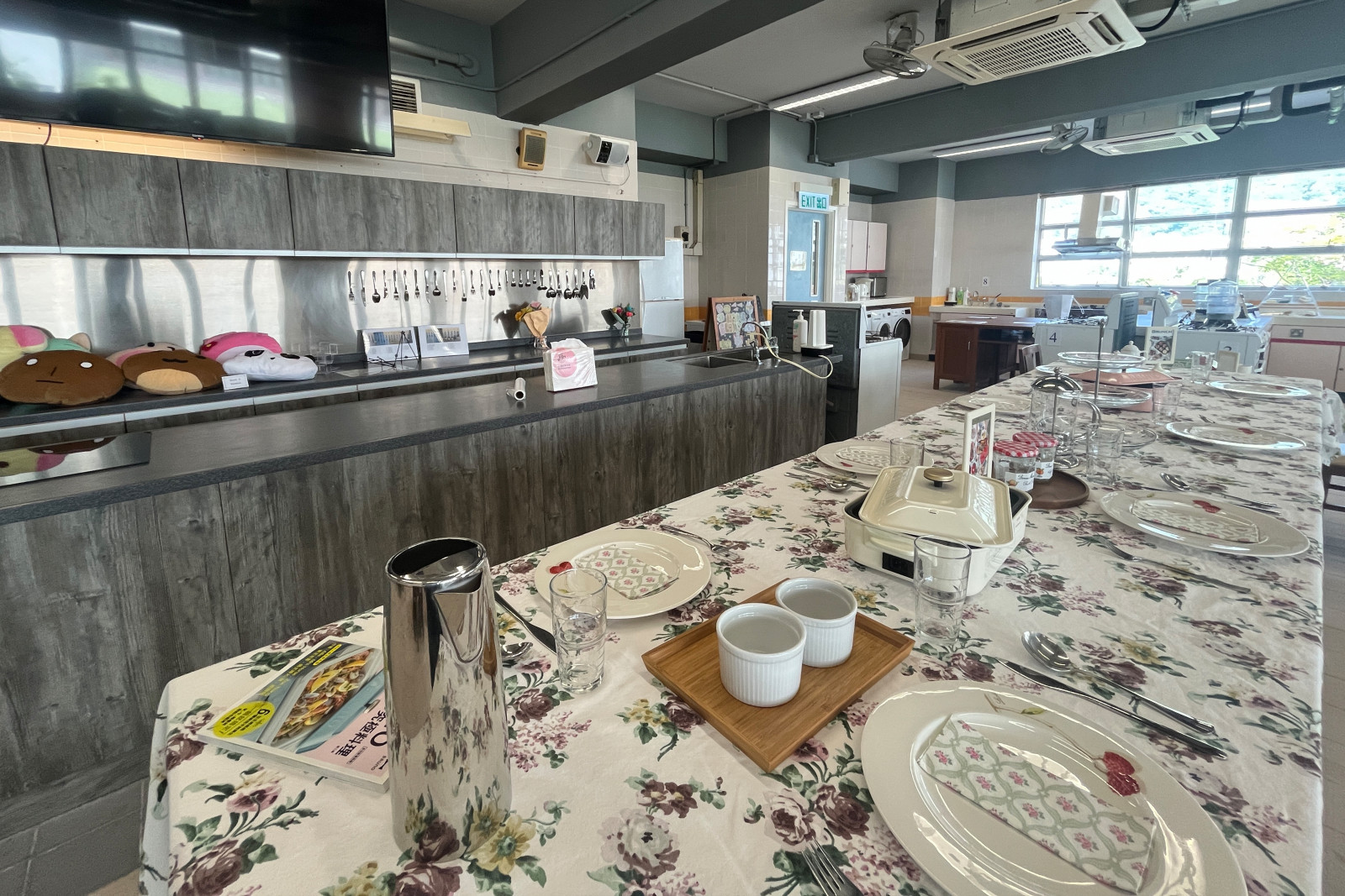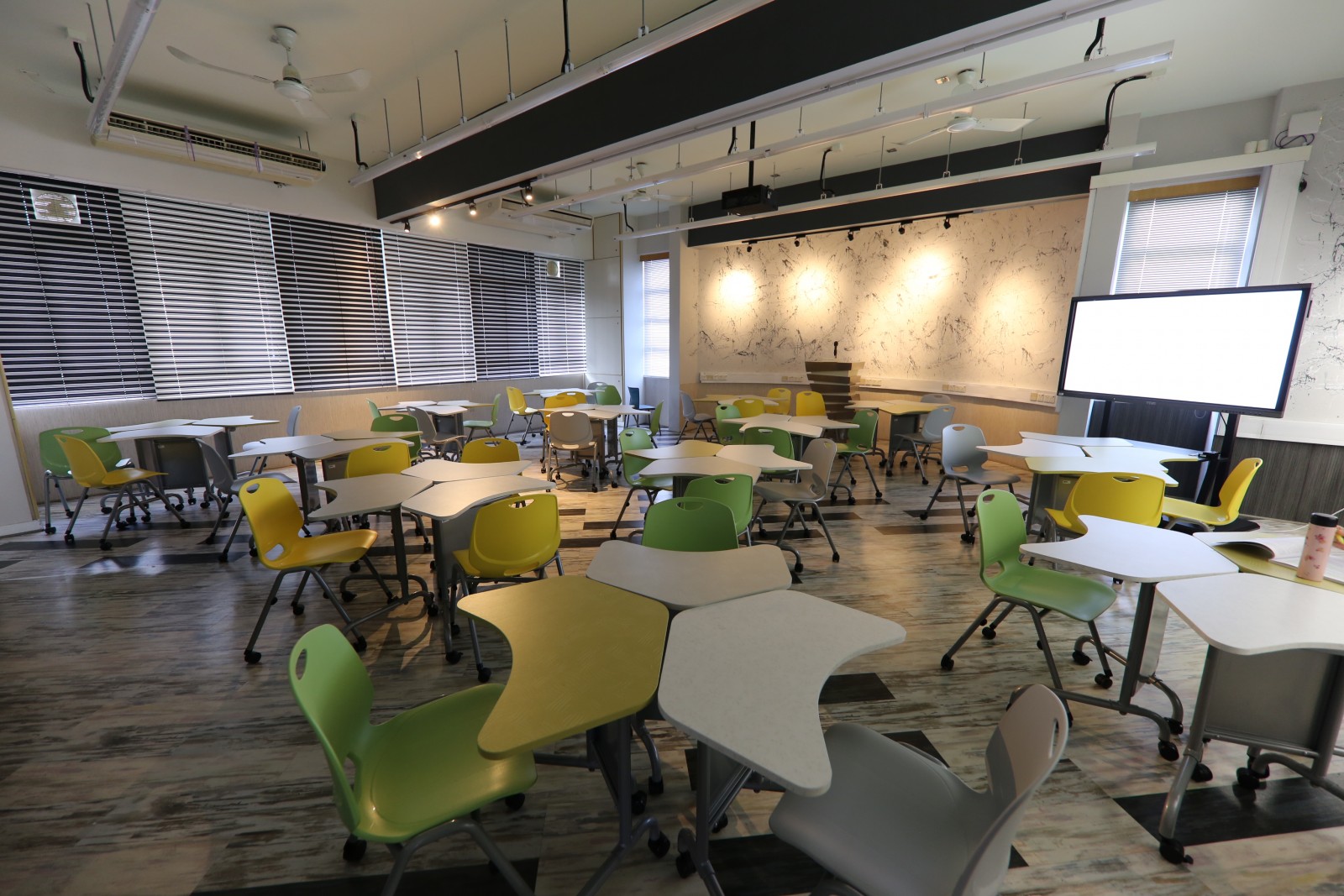 地下冷氣食物部,卡位設有小電視,播放新聞片段,卡位設計亦方便進行小組討論,打破上課在課室的局限。