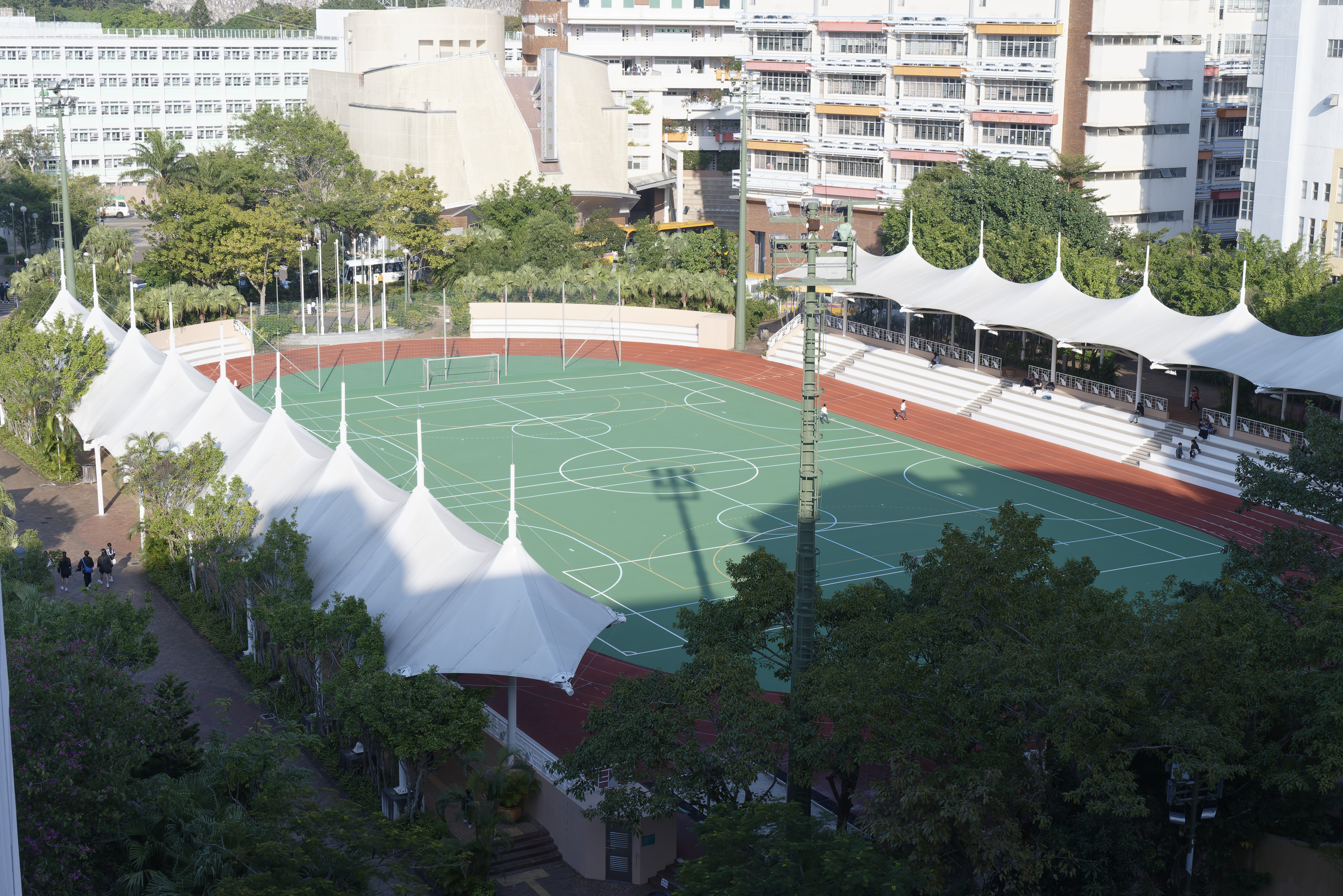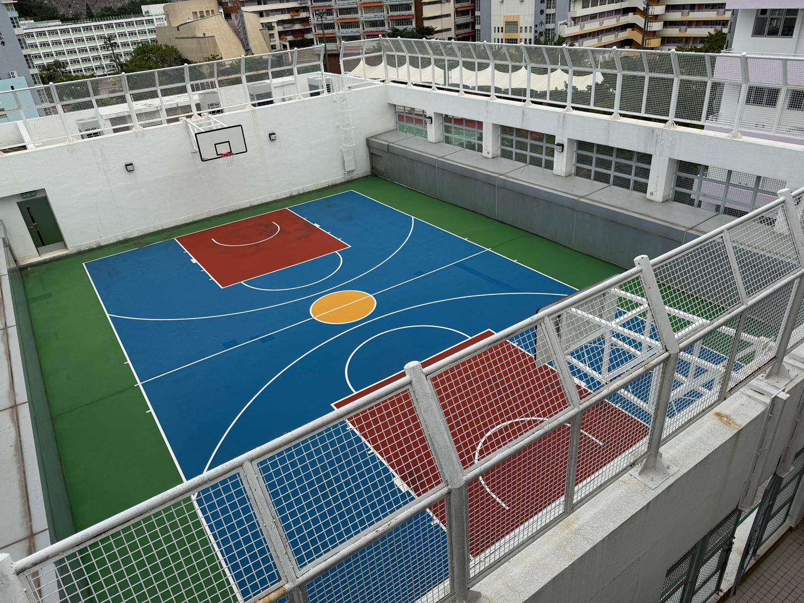 本校設有四個設備完善的籃球場,其中兩個更配備全天候設施,即使在雨天亦可照常使用,讓學生無論天氣如何都能持續進行球類訓練,全面提升技術與體能。