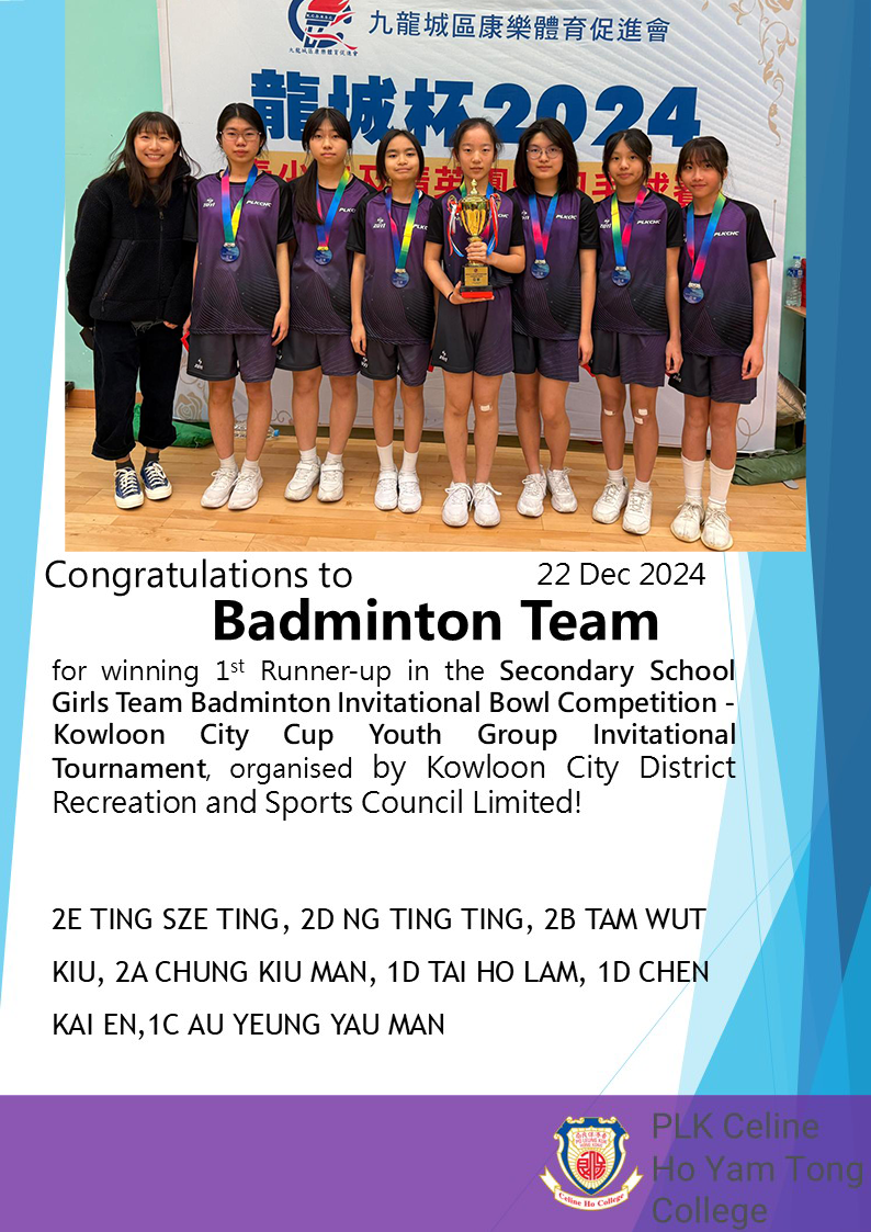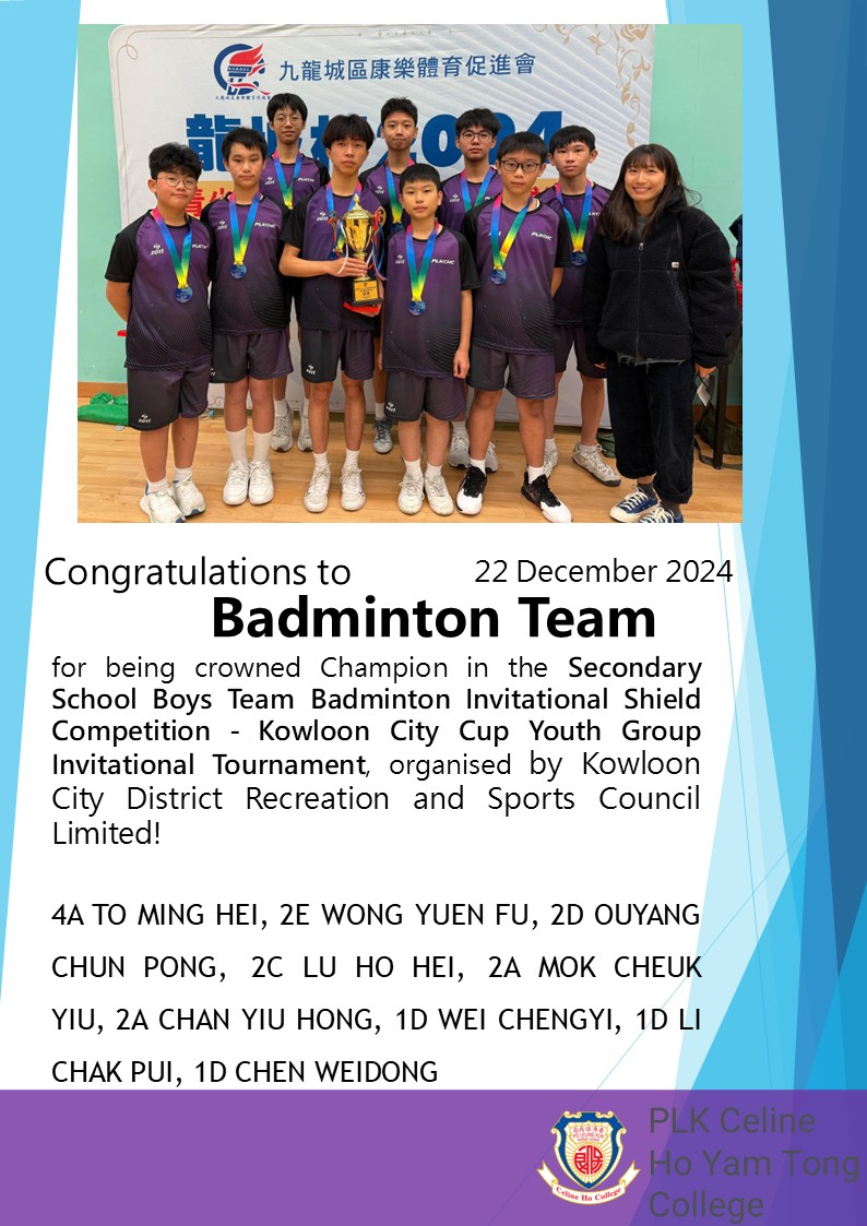Champion (Boys Team) and 1st runner-up (Girls Team) in Kowloon City Cup Youth Group Invitational Tournament
