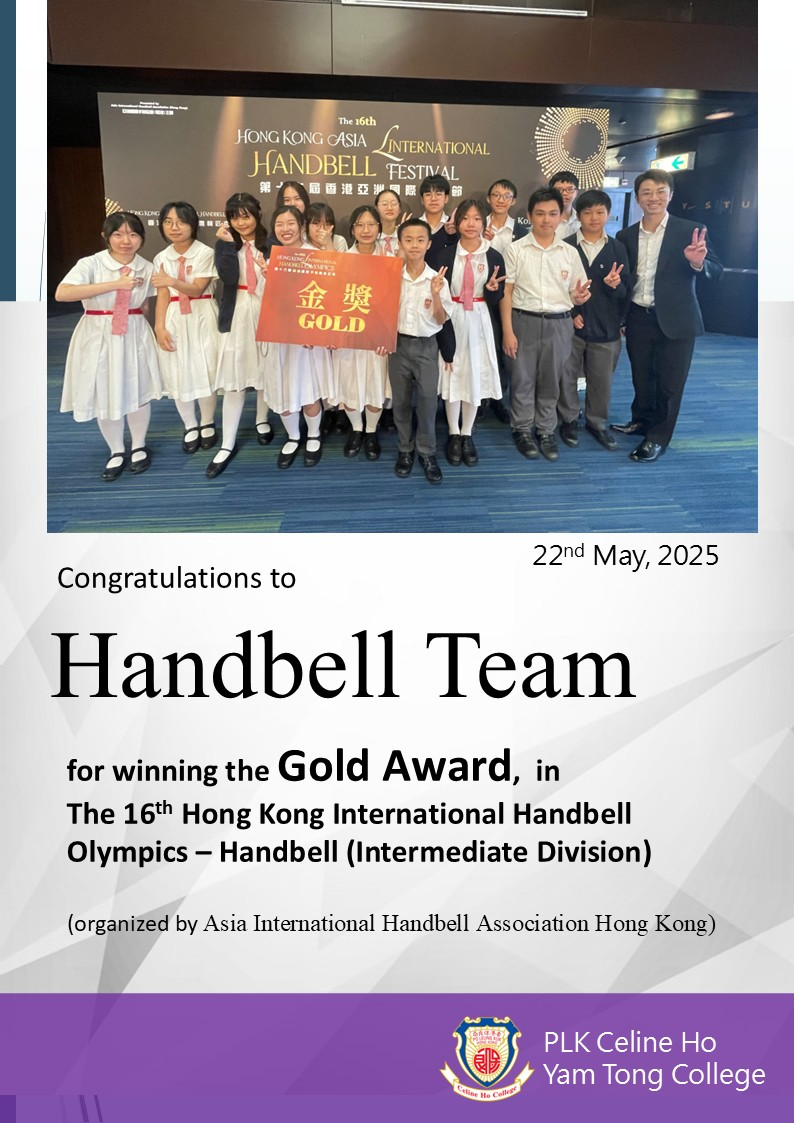 Gold Award in The 16th Hong Kong International Handbell Olympics (Handbell Intermediate Division)