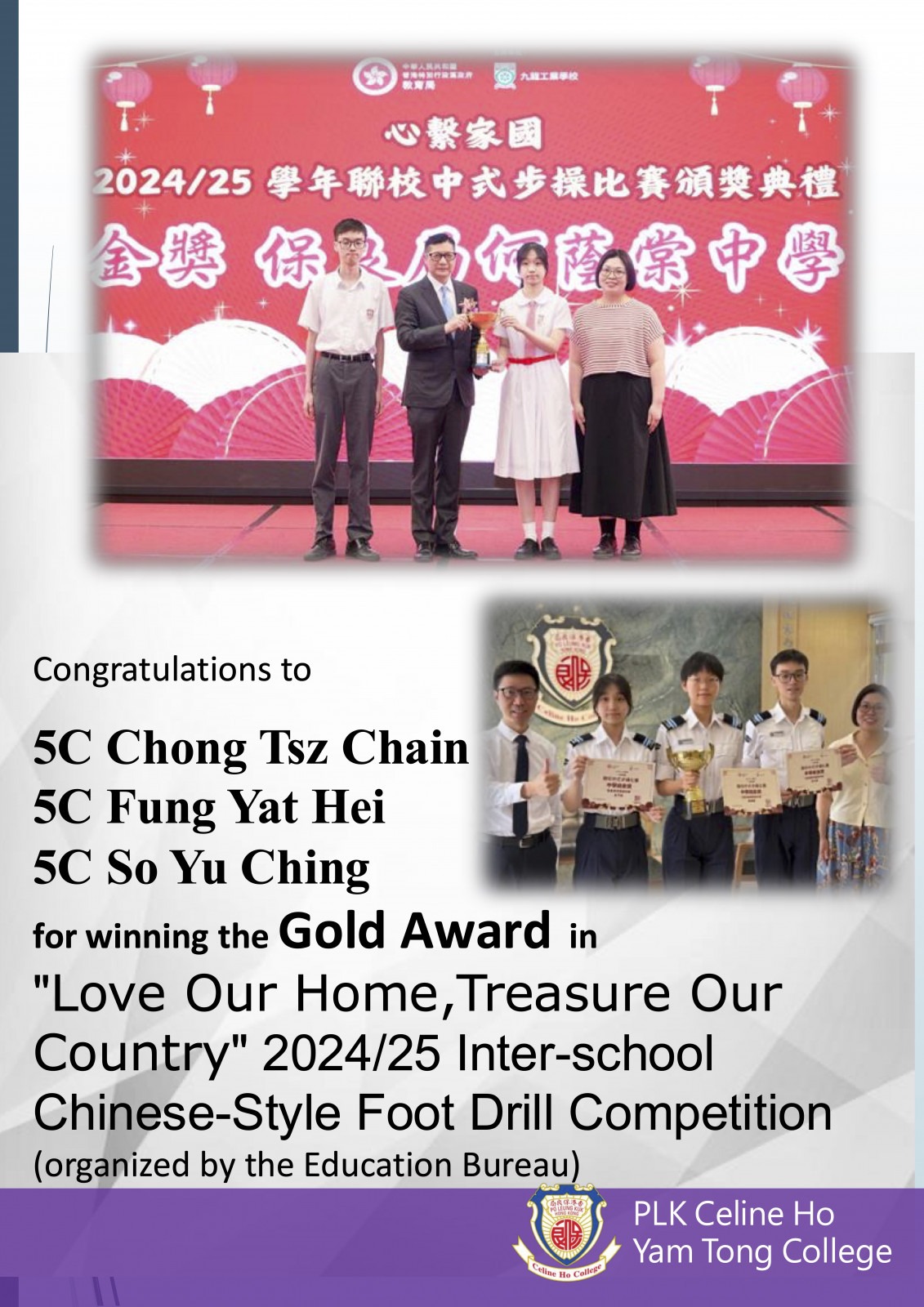 Gold Award in "Love Our Home, Treasure Our Country" 2024/25 Inter-school Chinese-style Foot Drill Competition