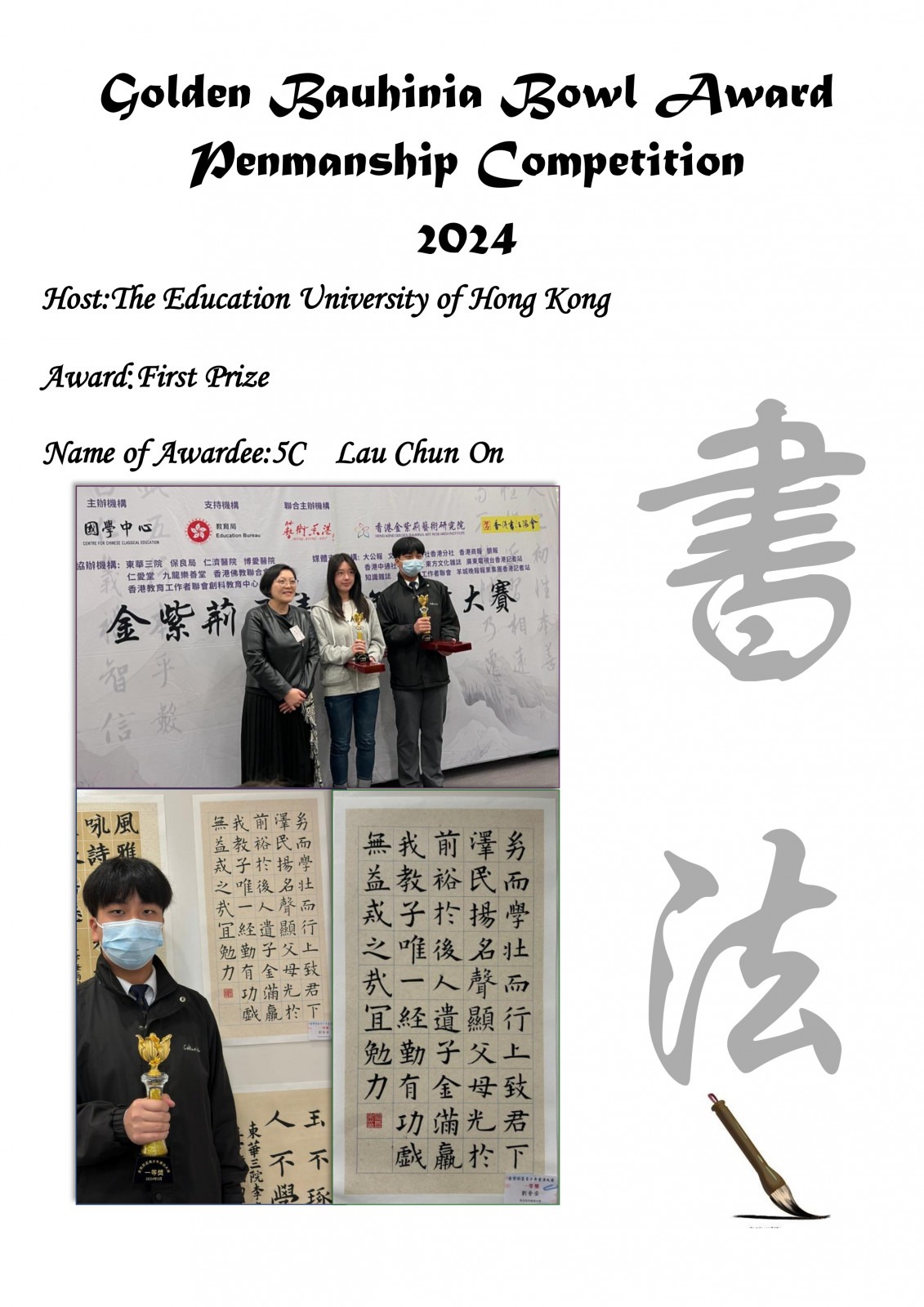 First Prize in Golden Bauhinia Bowl Award Penmanship Competition 2024