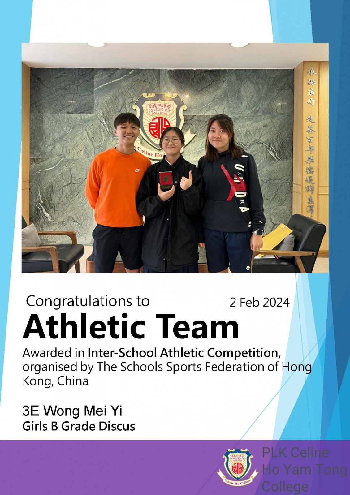 2nd Runner-up in Inter-School Athletic Competition (Girls B Grade Discus)