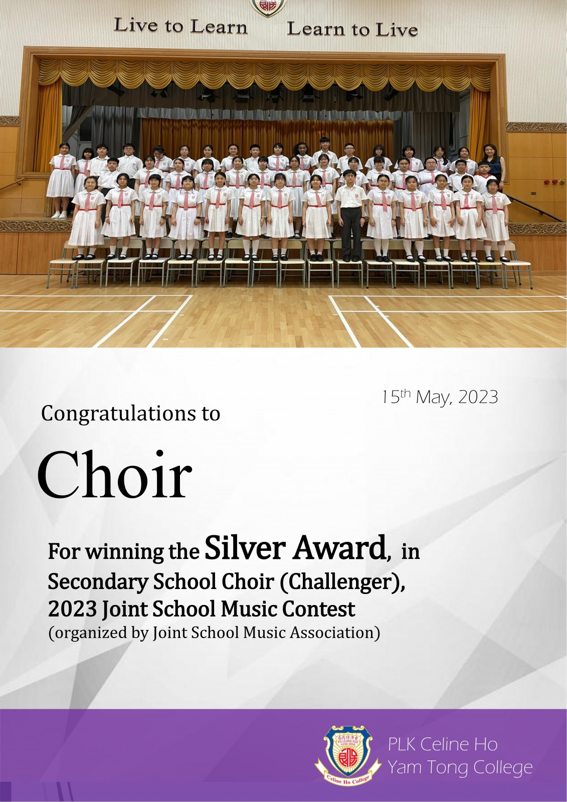 Silver Award in Secondary School Choir in 2023 Joint-school Music Contest