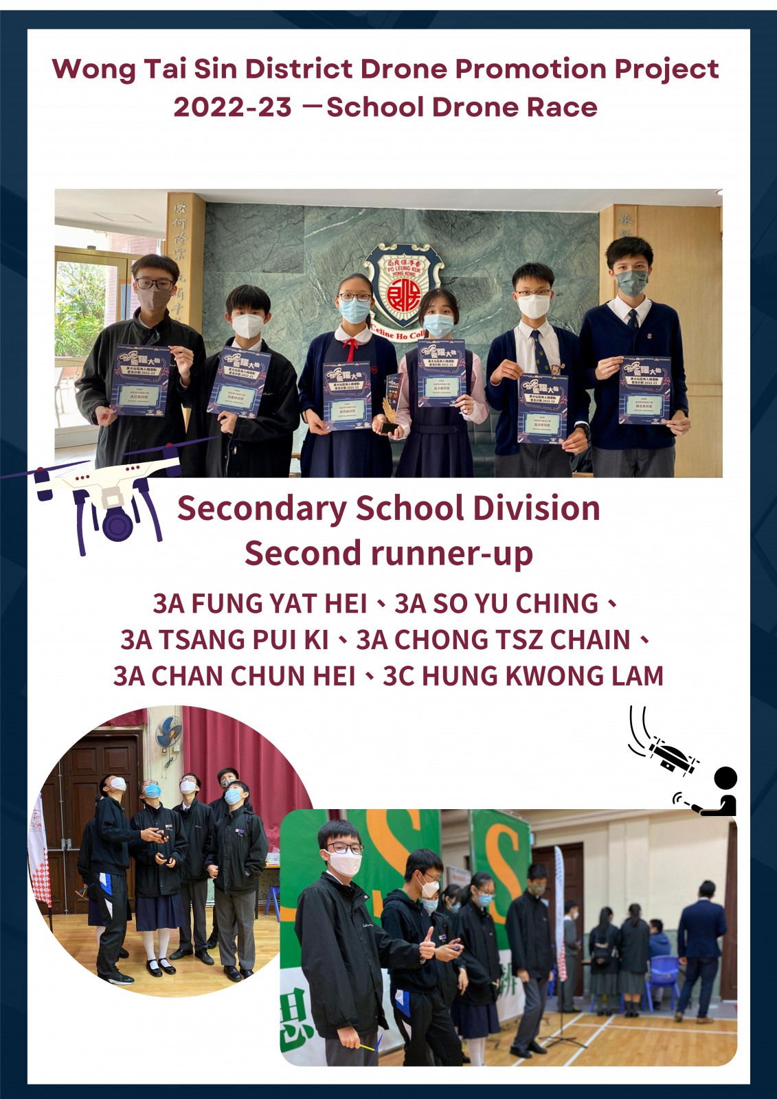 Second-runner up in the secondary school division Wong Tai Sin District Drone Race