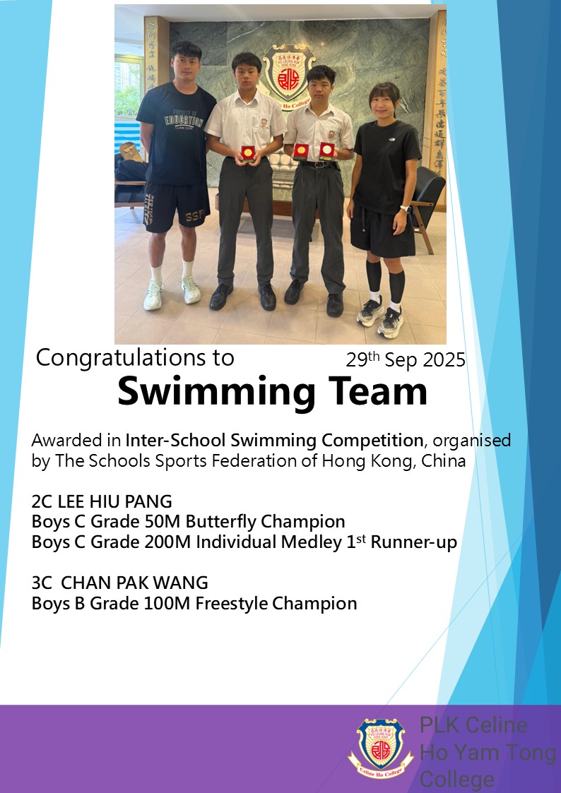 Champion and 1st Runner-Up in Inter-School Swimming Competition 2526