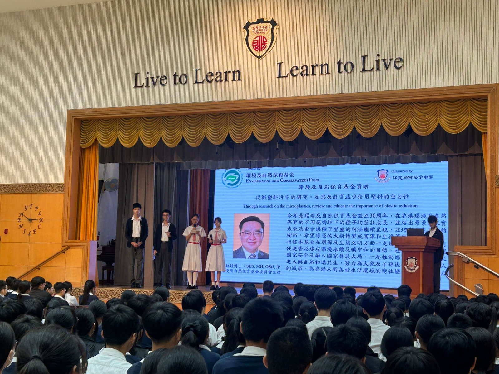 Our College has been funded by the Environment and Conservation Fund for a research project entitled "Through Research on Microplastics, Review and Educate the Importance of Plastic Reduction". This project was conducted after getting the experts’ advice from members of The State Key Laboratory of Marine Pollution (SKLMP) at City University of Hong Kong, who provided invaluable professional advice and feedback.