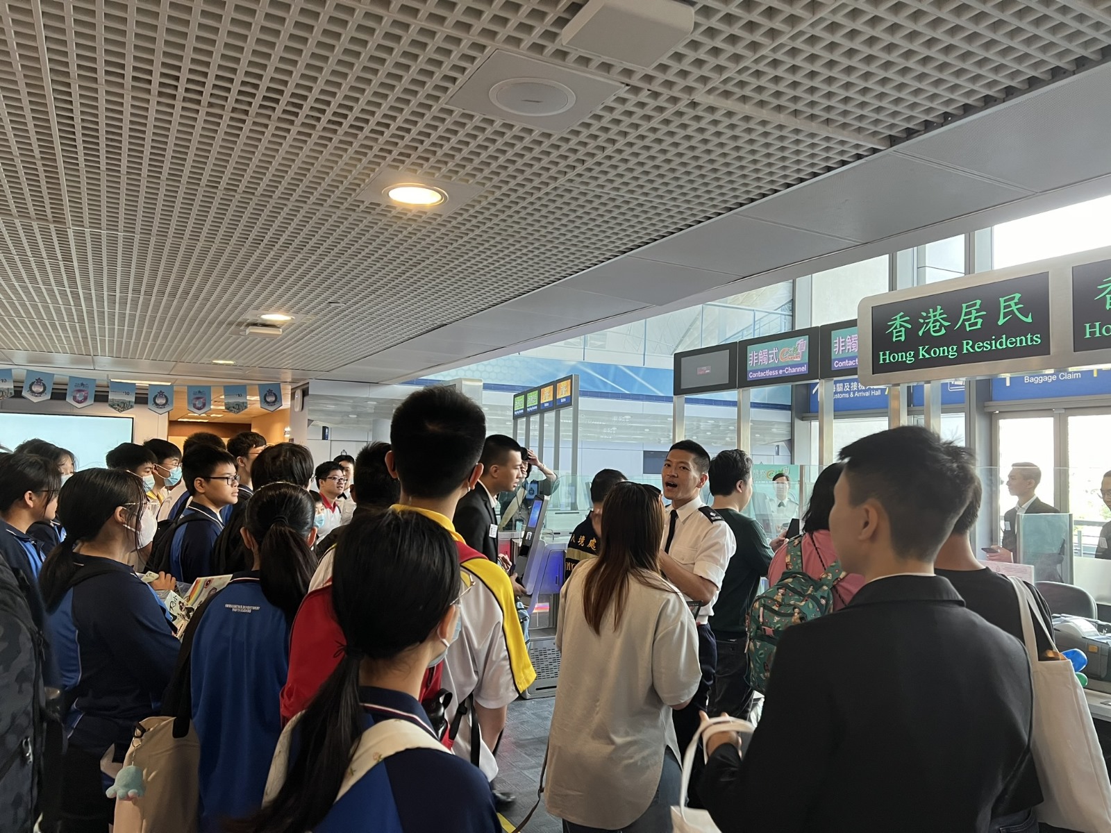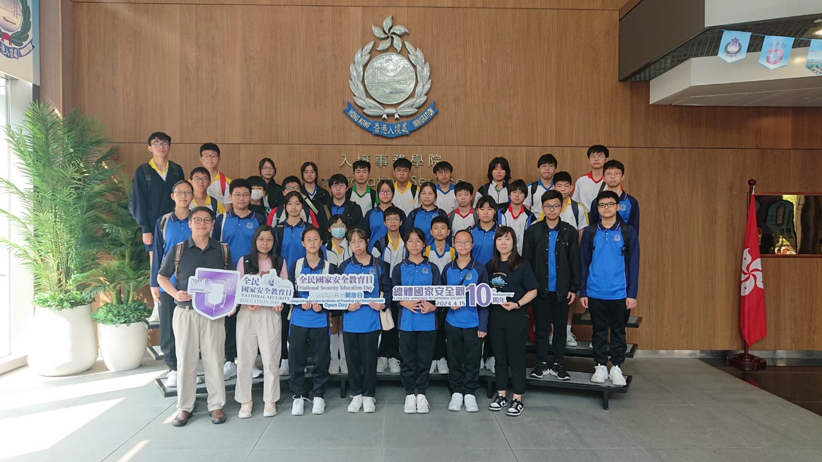 National Security Education Day falls on 15 April. A speech was delivered under the national flag on 10 April to highlight the theme of National Security Education Day. All students watched an educational video about National Security on 15 April. On top of that, on Saturday 13 April, students, Immigration Department Youth Leaders Corps and teachers joined the open day held by the Immigration Service Institute of Training and Development. Participants took part in a series of interactive activities in order to raise the awareness of national security and understand more about the duties of the Immigration Department in maintaining and implementing the principle of "one country, two systems", safeguarding national security, and serving Hong Kong residents, including those outside Hong Kong.