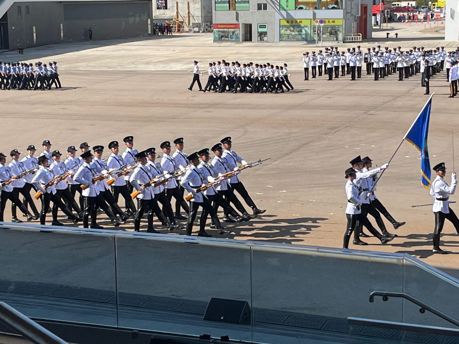 On October 1st, National Day, three students from our school's Immigration Department Youth Leaders Corps participated in the " Parade by Disciplined Services and Youth Groups cum Carnival for Celebrating the 74th Anniversary of the Founding of the People's Republic of China". Through well-organized marching formations and unwavering determination in their eyes, the students demonstrated a spirit of perseverance and obedience. This event broadened the students' horizons and enhanced their sense of national identity.