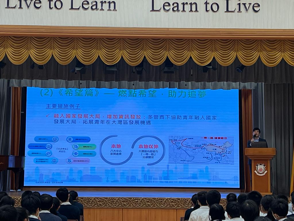Through the sharing of two guests, the students at our school have a better understanding of the "Youth Development Blueprint". Students have a deeper understanding of the policies of the SAR government in terms of education, employment, entrepreneurship and home ownership, and better plan for the future.