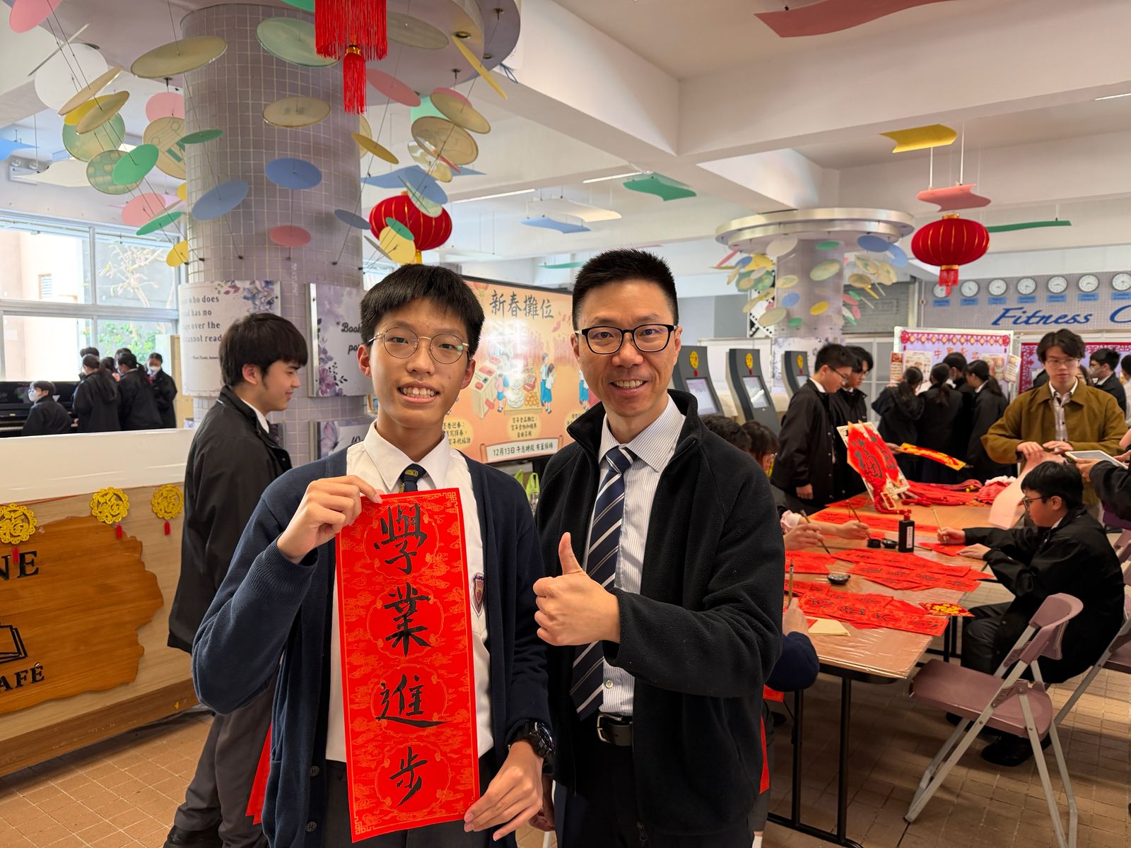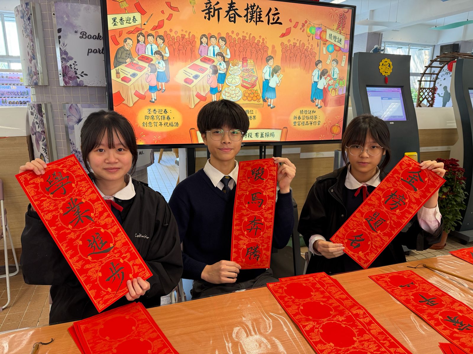 Highlights include the Blessing Knot Ornament Workshop, Chinese tea art and tea experiences (including Hakka thunder tea and tea-tasting/tea painting), as well as Chinese New Year calligraphy couplets. Students also solved lantern riddles and completed in Chinese New Year customs quizzes. The Carnival ended with Chinese New Year food booths and a dumpling-making workshop, enabling students to experience the joy of the reunion meal.