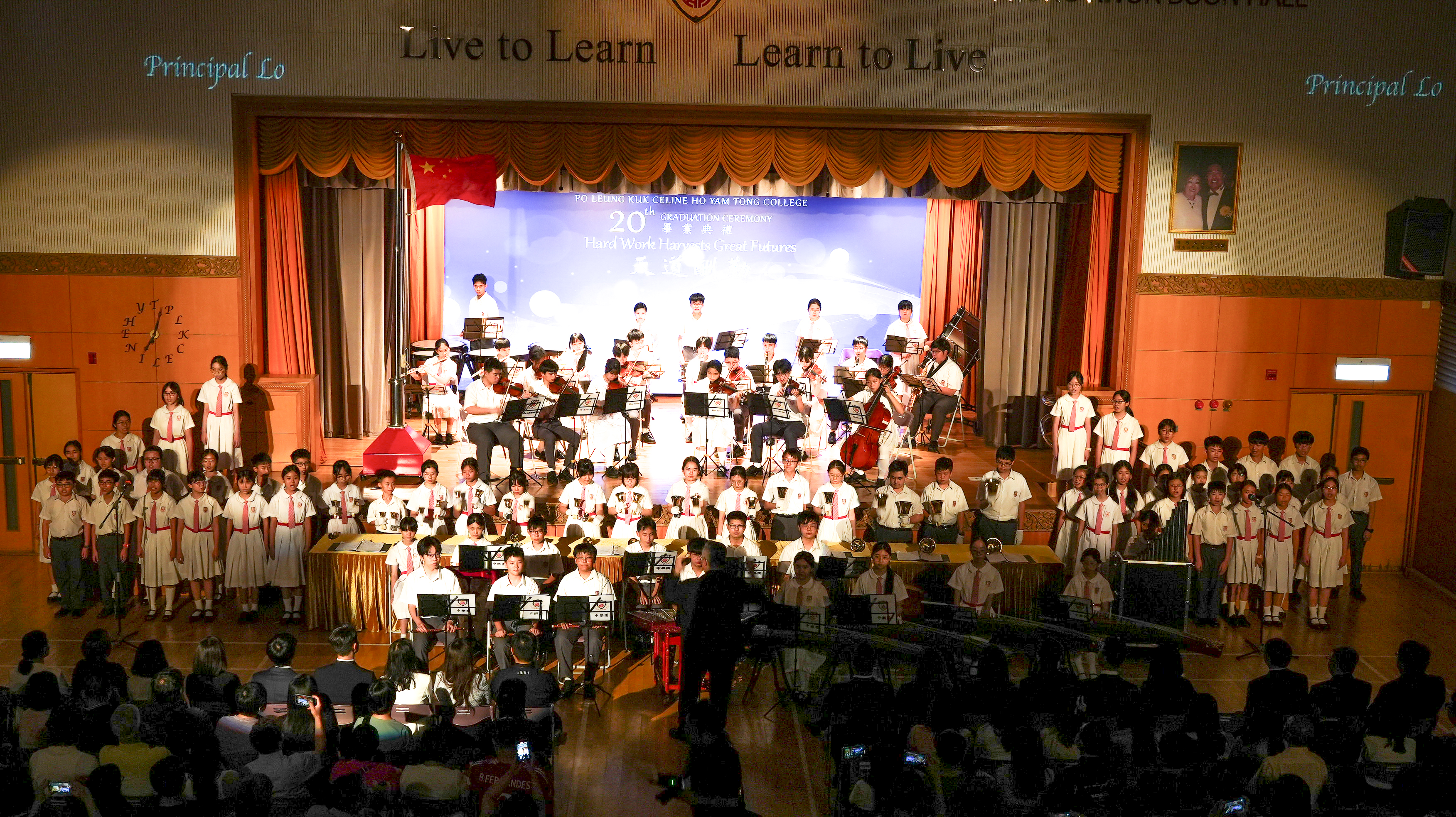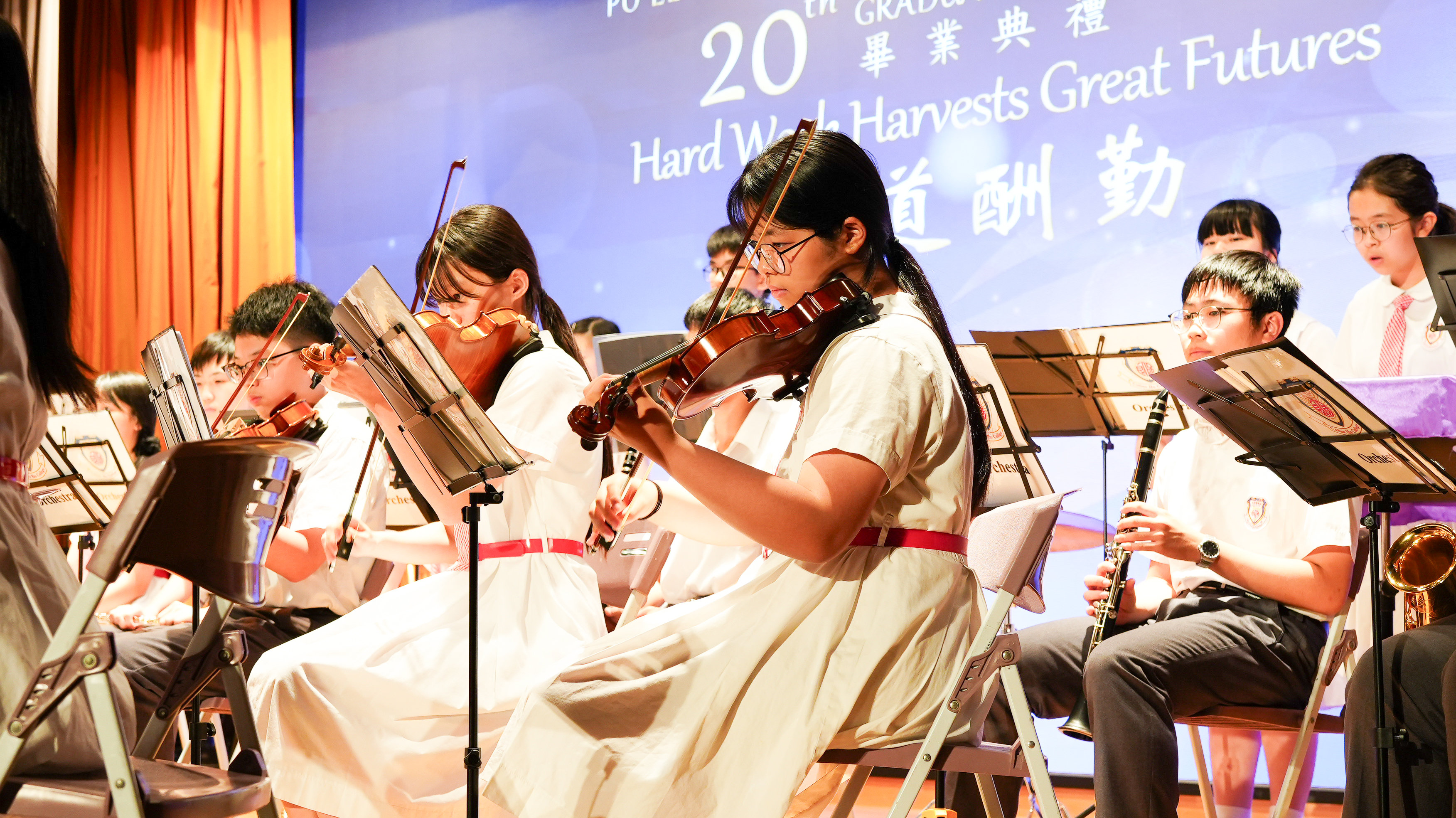 Taking part in school interest groups and learning activities, students actively participate in cultural and artistic activities. Through exhibitions, performances, visual arts, music competitions and so on, students can show their strengths and their self-confidence can be enhanced. In addition, our school implements the 'One Art in Life' scheme, each student needs to learn at least one musical instrument from Secondary One to Secondary Three so as to develop their lifelong interest in music. The school has an orchestra, Chinese orchestra, School Choir and Handbell Team, in which students can practise the music and instrument skills they have learnt.