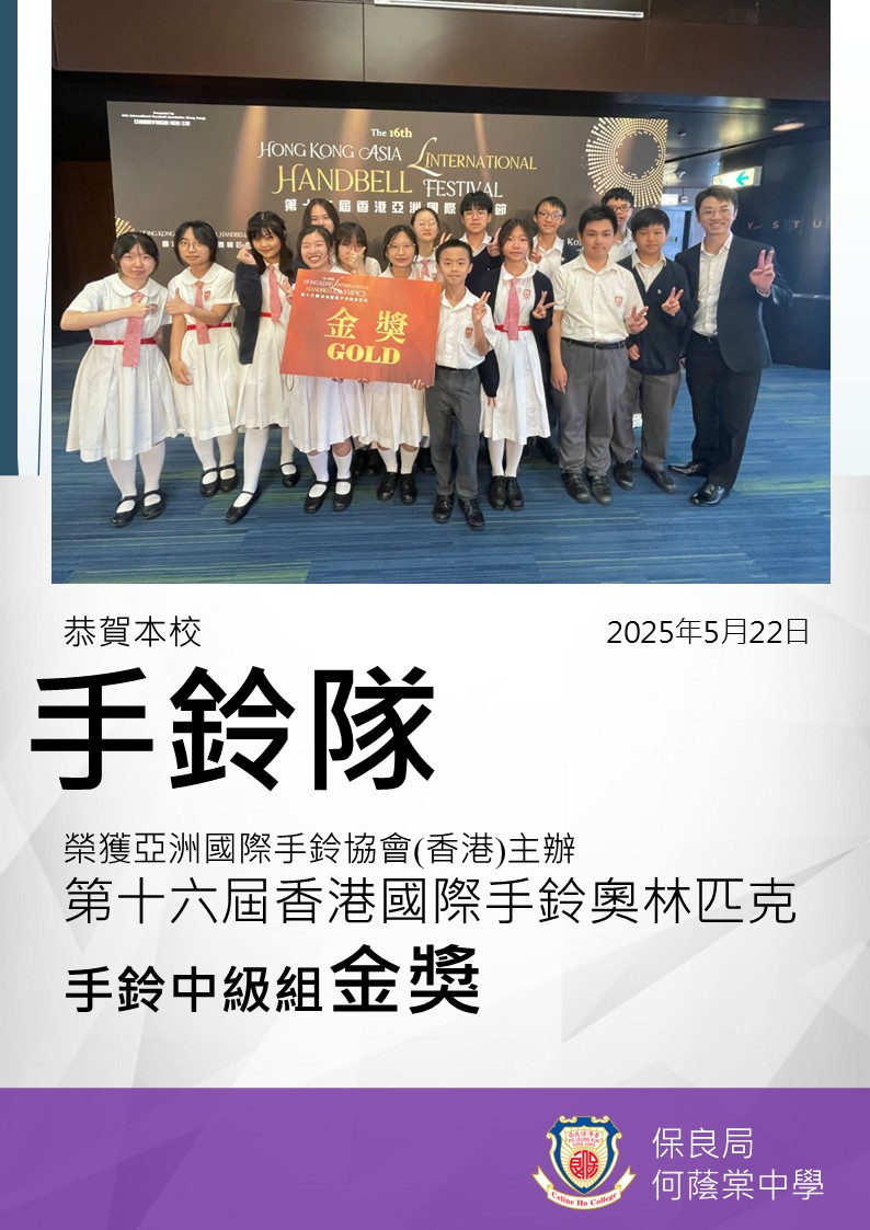 第十六屆香港國際手鈴奧林匹克 (手鈴中級組) - 金獎
