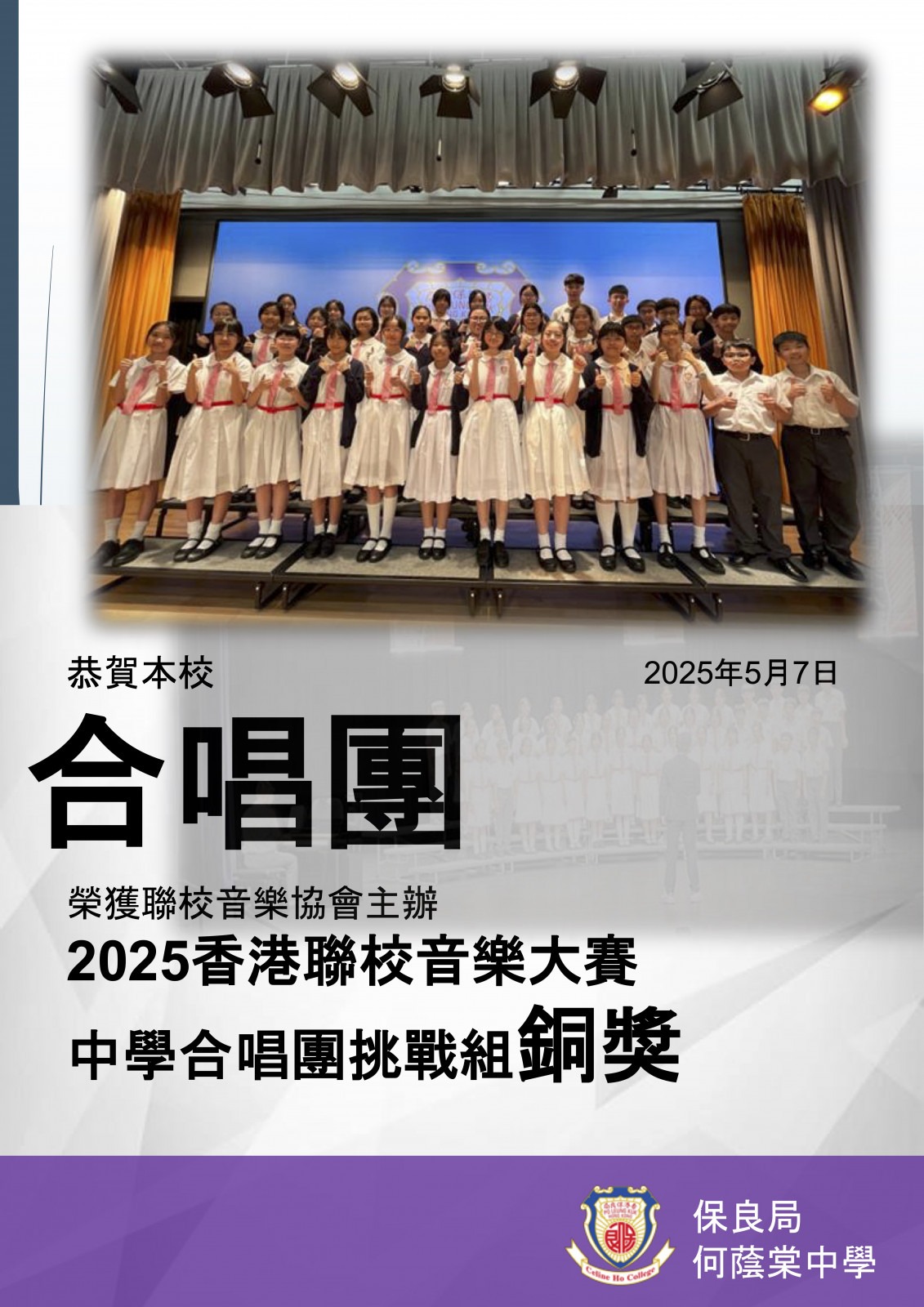 2025香港聯校音樂大賽 - 中學合唱團挑戰組銅獎