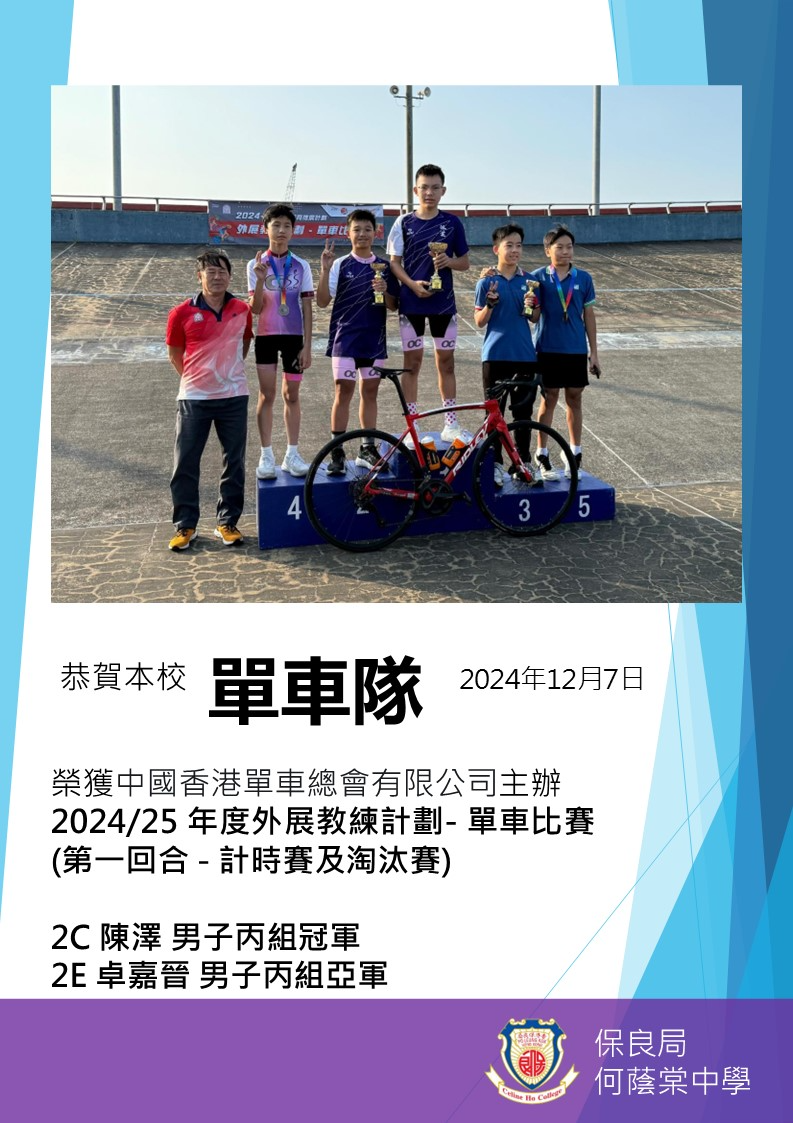2425年度外展教練計劃 - 單車比賽(第一回合 - 計時賽及淘汰賽) - 男子丙組冠軍及亞軍