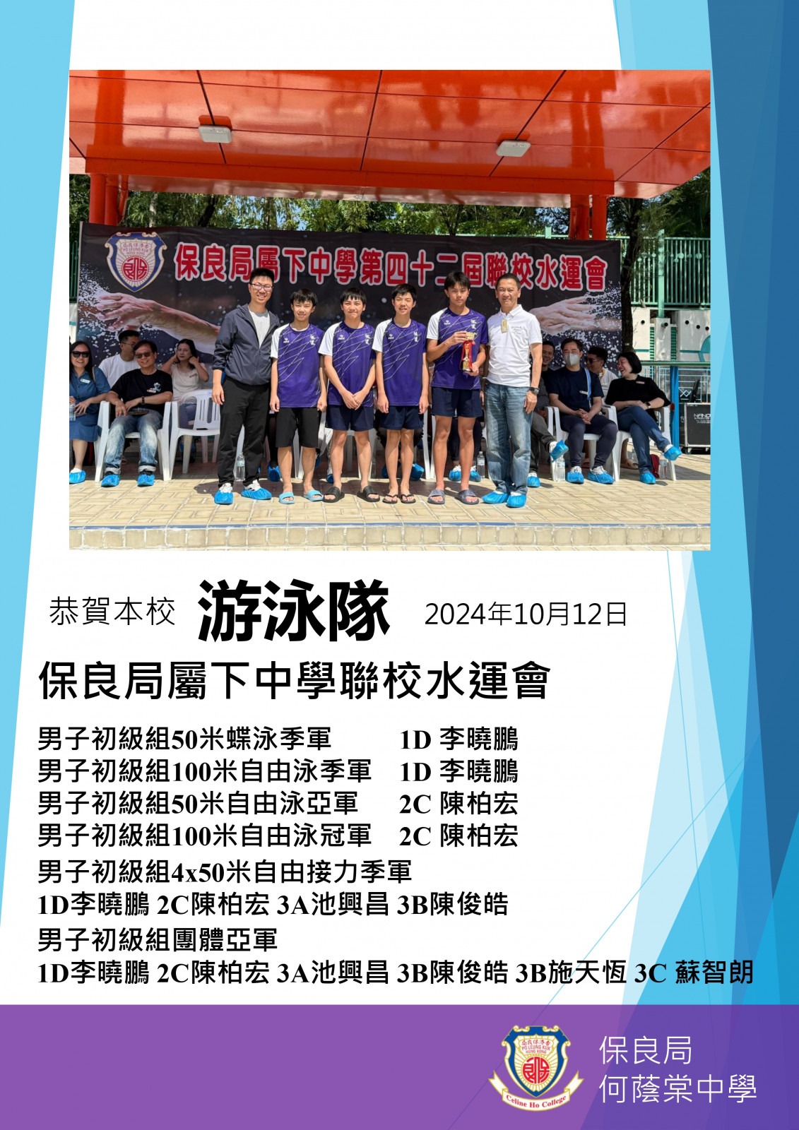 保良局聯校水運會2024 - 男子初級組團體亞軍及多個獎項