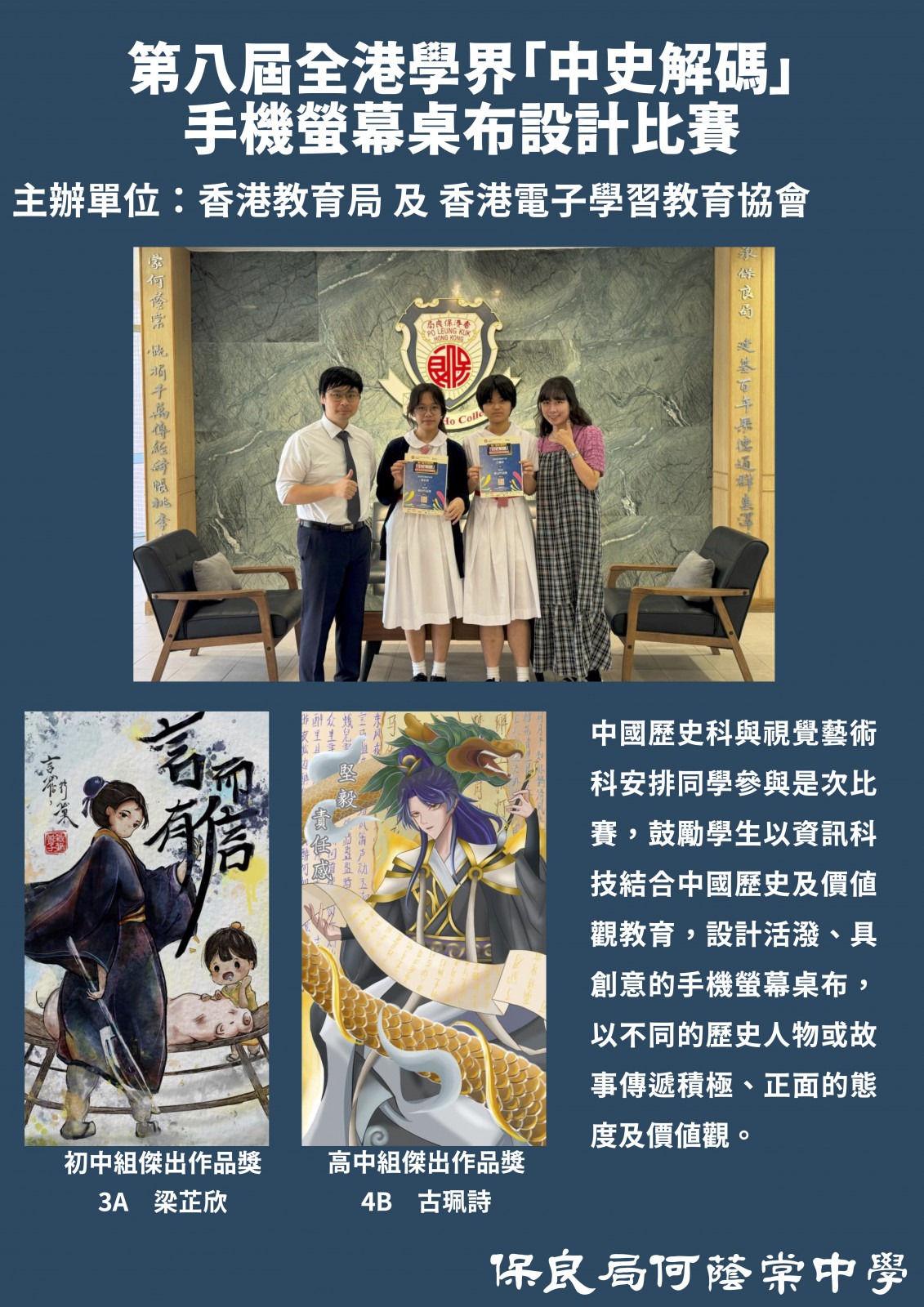 第八屆全港學界「中史解碼」手機螢幕桌布設計比賽 - 傑出作品獎