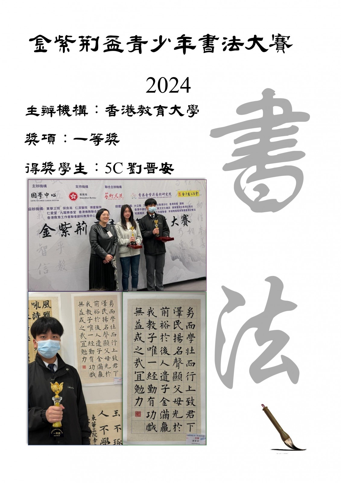 金紫荊盃青少年書法大賽2024 - 一等獎