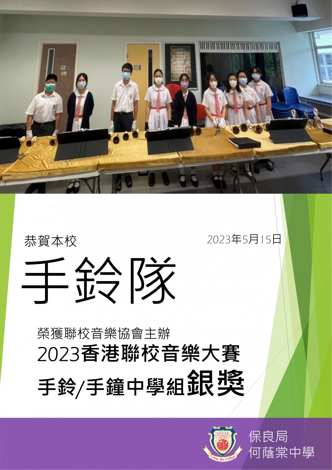 本校於2023聯校音樂大賽-手鈴手鐘中學組 – 銀獎