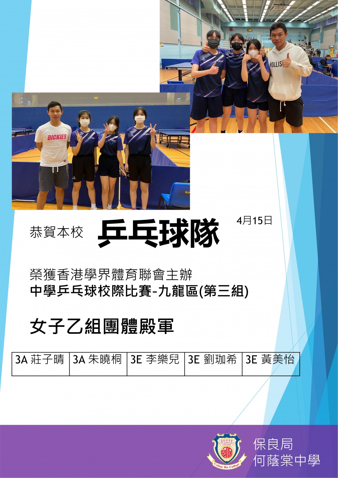 中學校際乒乓球比賽 – 殿軍(女子乙組)