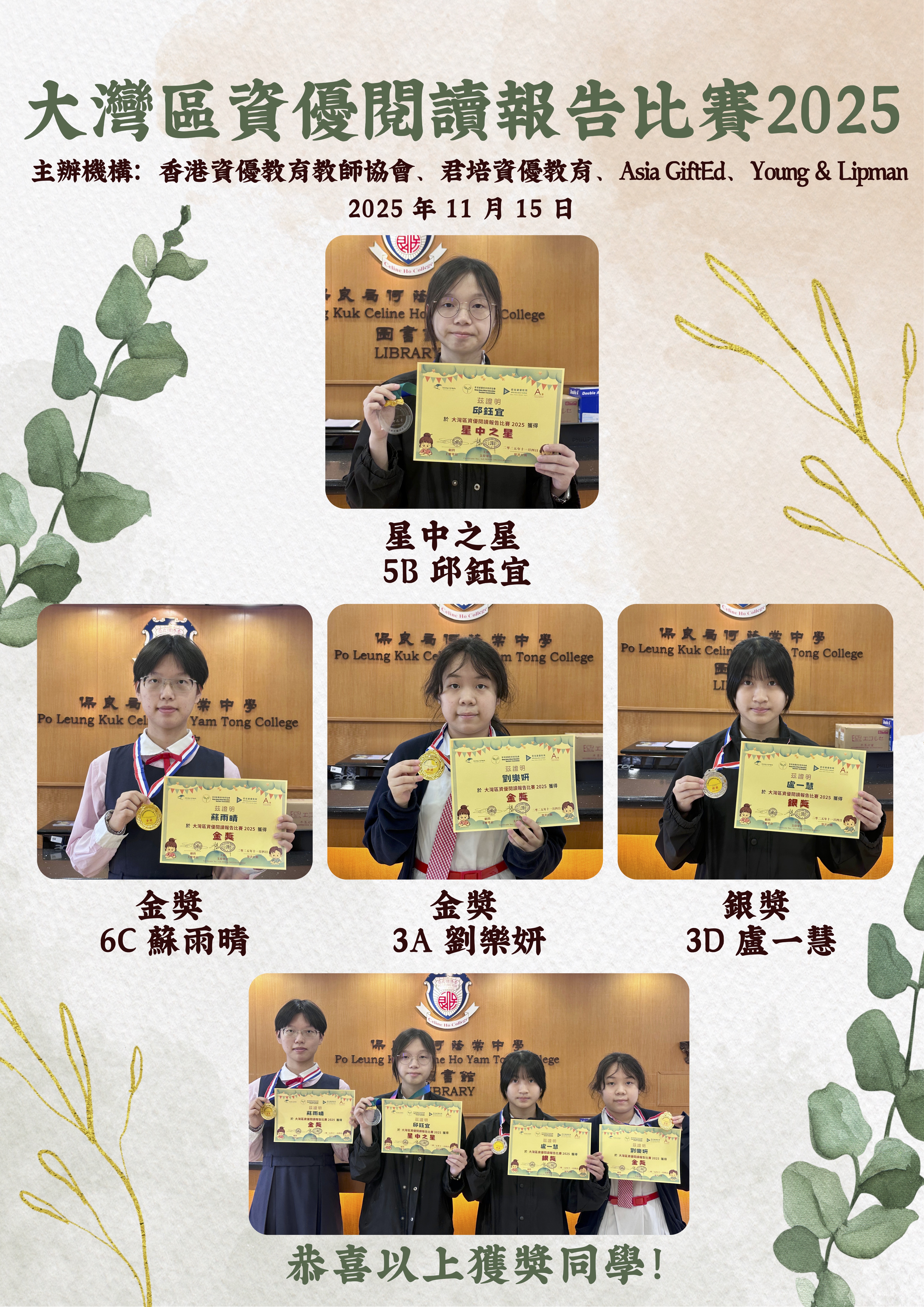 大灣區資優閱讀報告比賽2025 - 星中之星及多個獎項