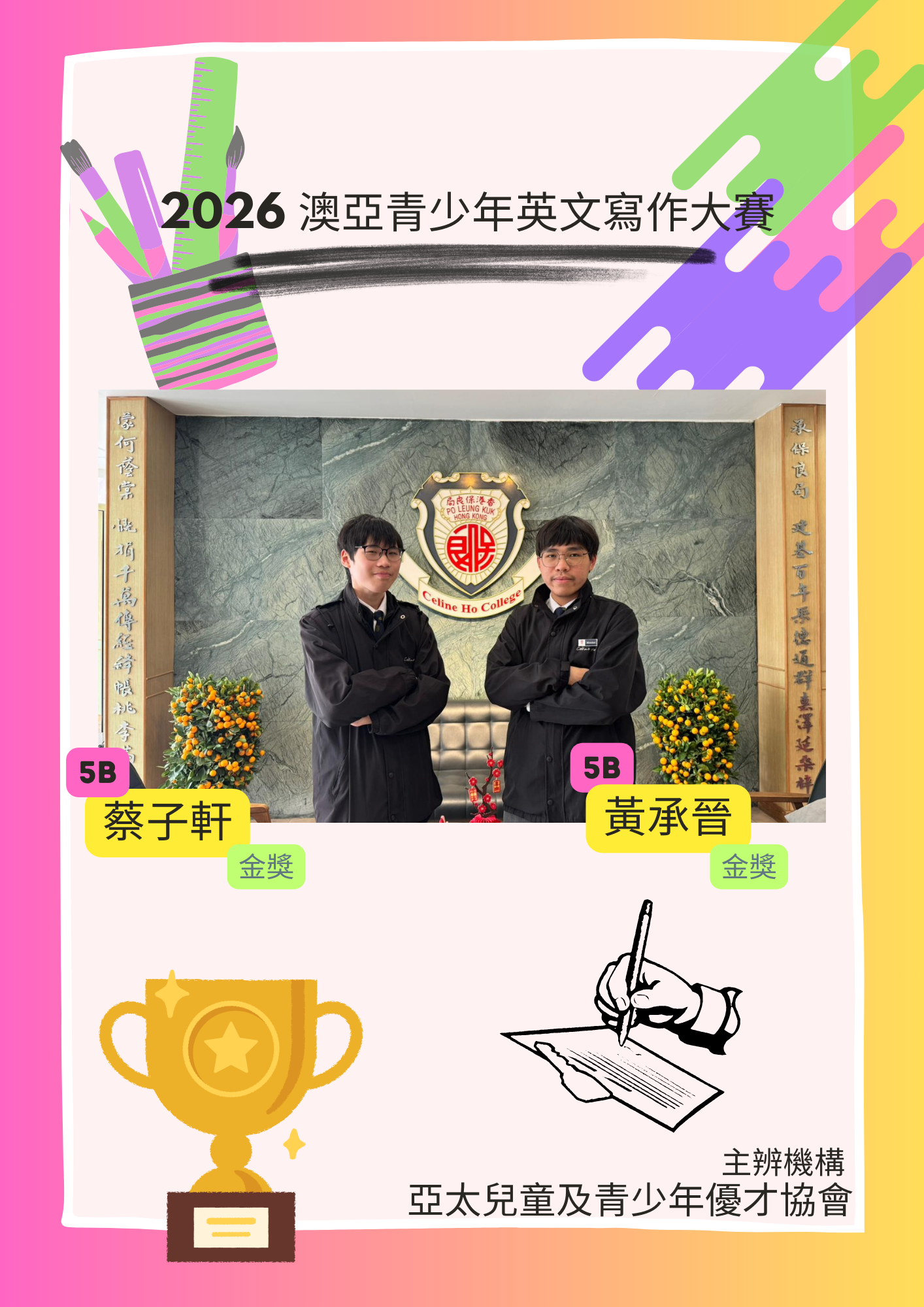 2026 澳亞青少年英文寫作大賽 - 金獎