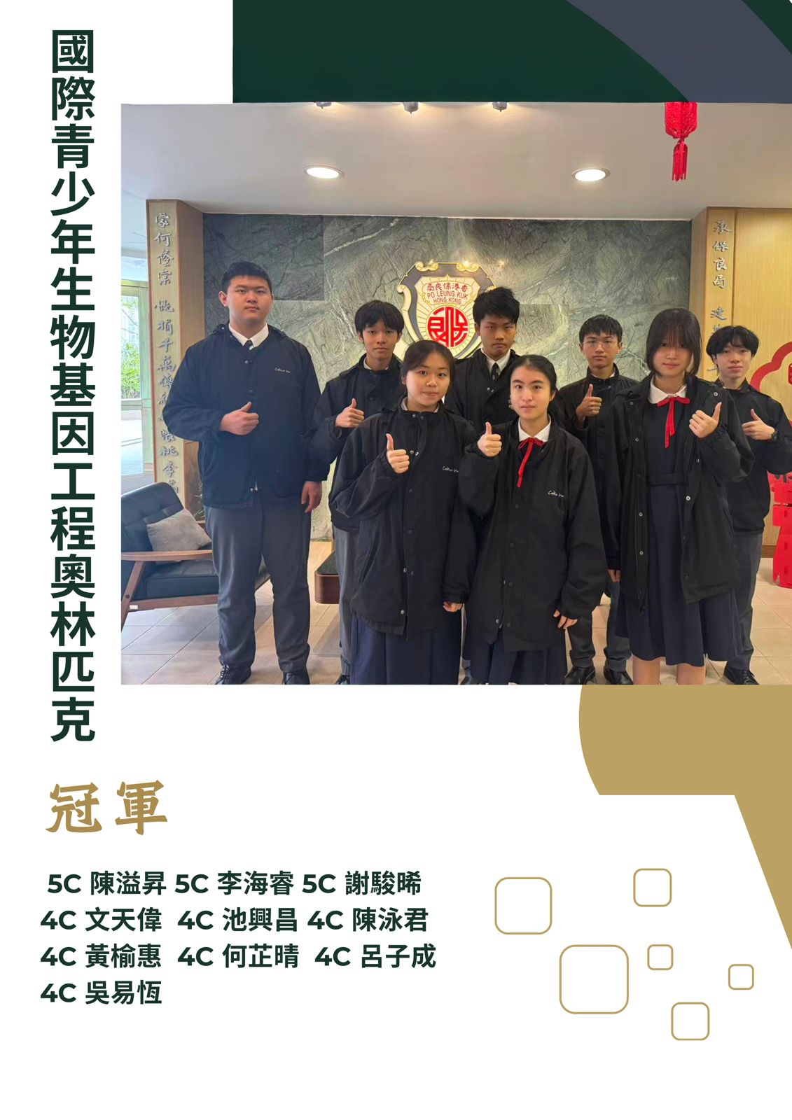 國際青少年生物基因工程奧林匹克 - 冠軍